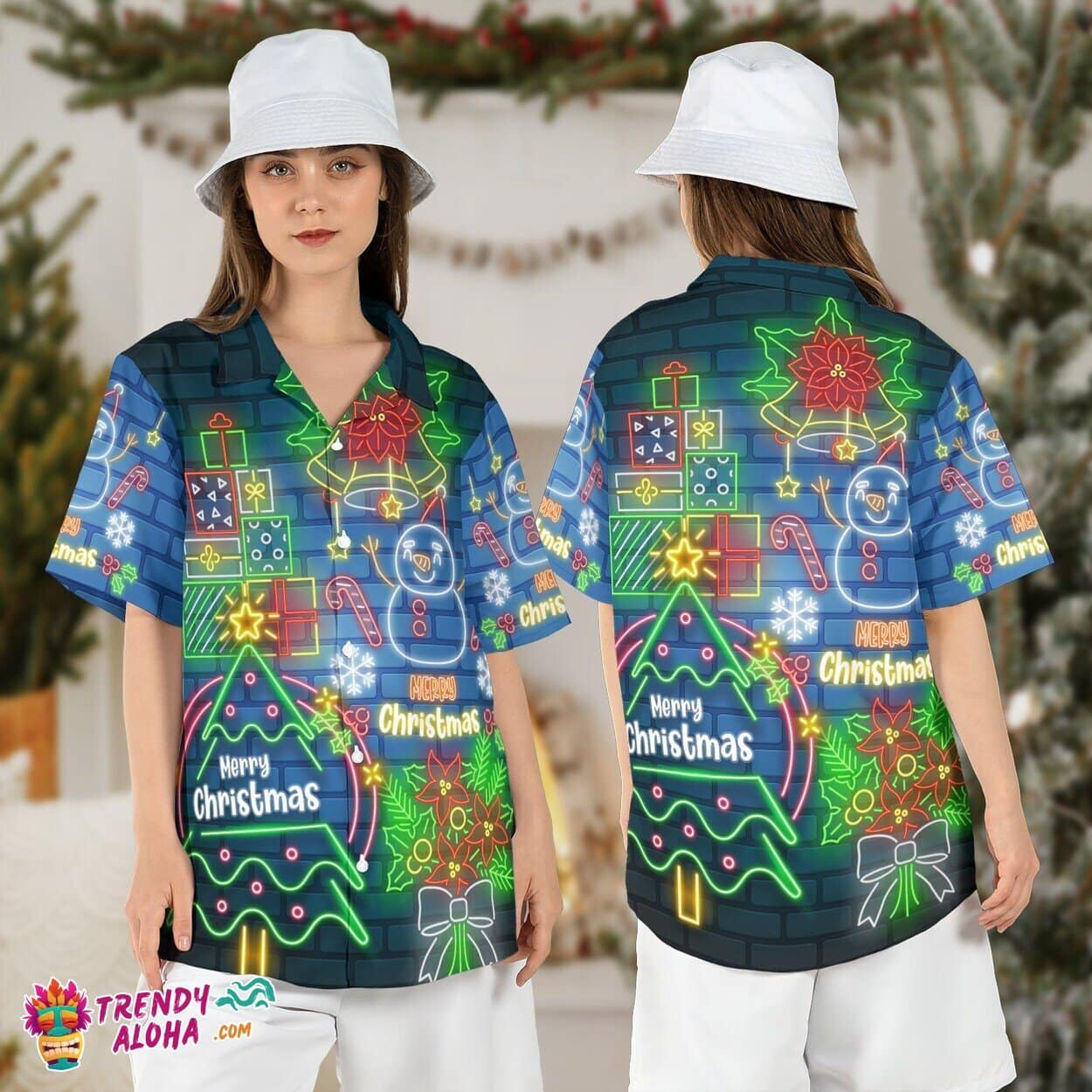 Neon Merry Christmas Tropical Tree Hawaiian Xmas Holiday KLA Shirt