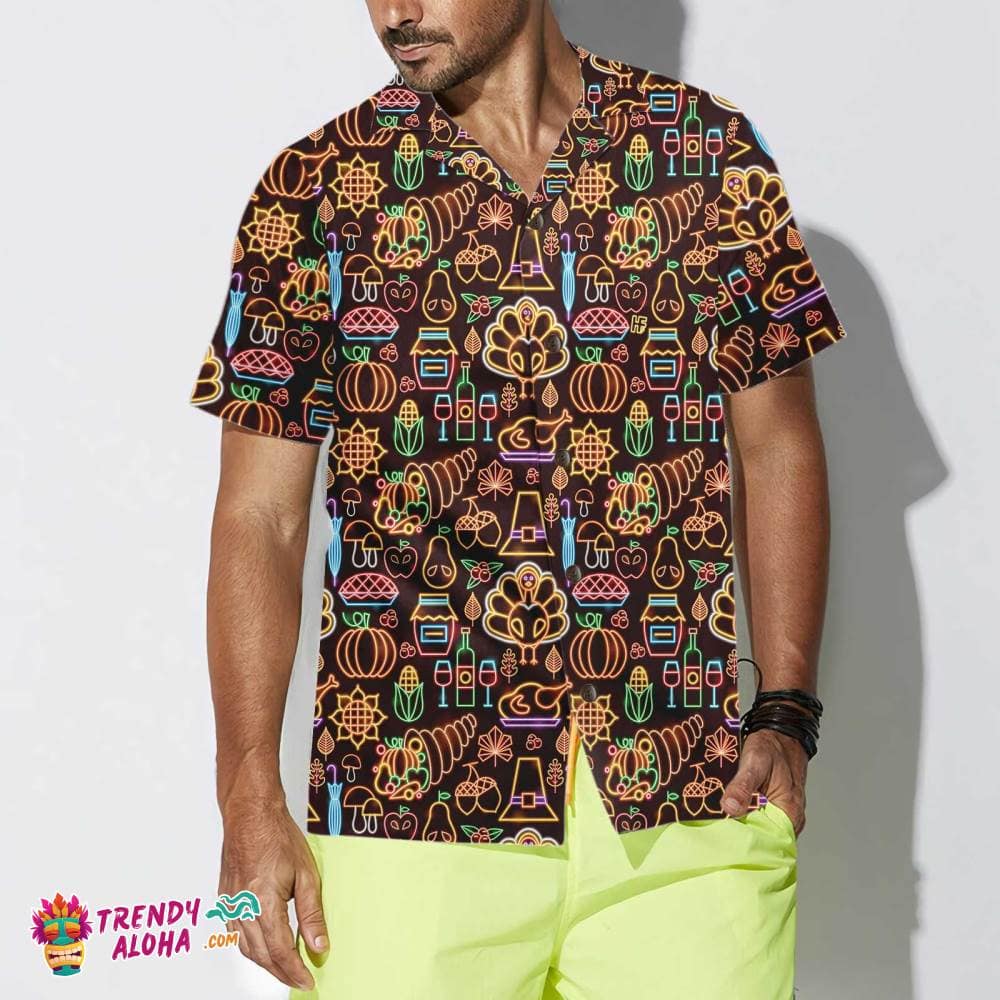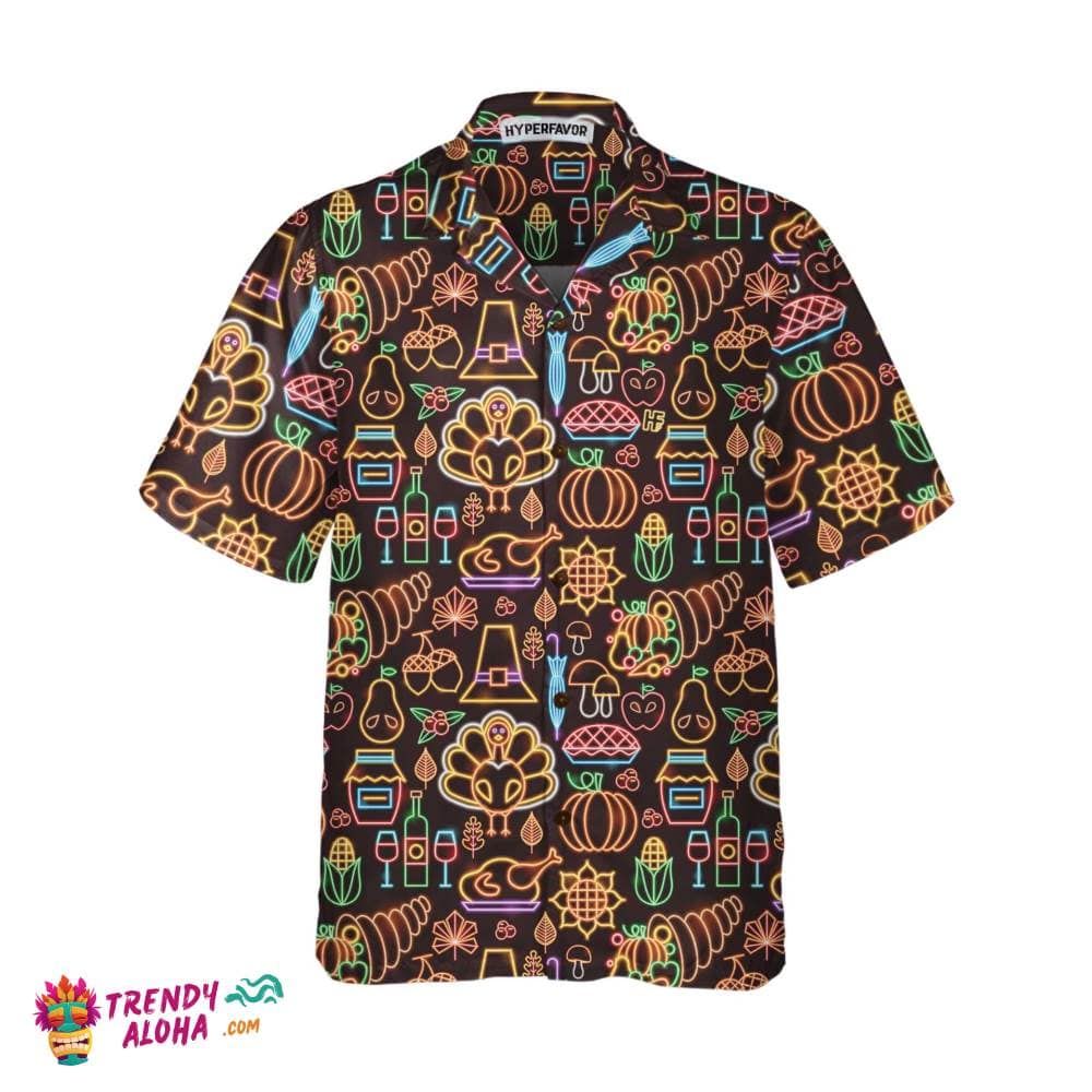 Neon Thanksgiving Turkey Seamless Pattern Hawaiian Shirt, Funny Thanksgiving Shirt, Best Gift For Thanksgiving Day