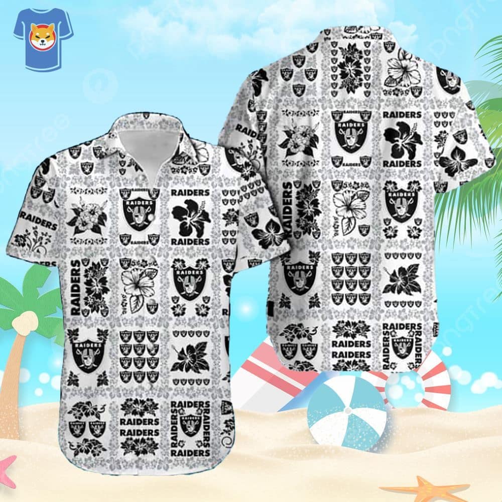 You’re viewing NFL Las Vegas Raiders Hawaiian Shirt Hibiscus Pattern Beach Gift For Him.