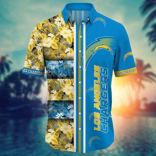 You’re viewing Nfl Los Angeles Chargers Gold Flowers Blue Trendy Hawaiian Shirt KLA Shirt.