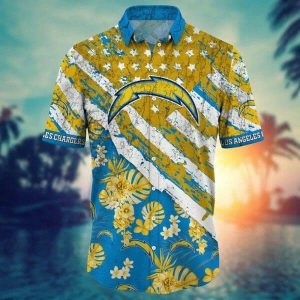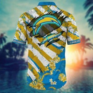 You’re viewing Nfl Los Angeles Chargers Gold Flowers Blue Trendy Hawaiian Shirt V2 KLA Shirt.