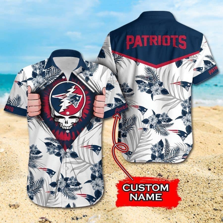 You’re viewing NFL New England Patriots Custom Name Flower Skull Hawaiian Shirt.