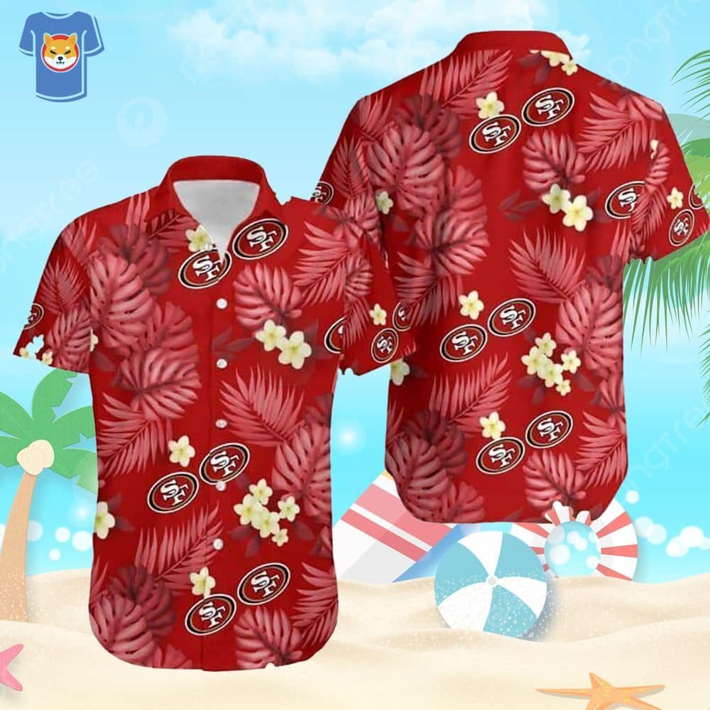 NFL San Francisco 49Ers Hawaiian Shirt Palm Leaves And Flowers Pattern