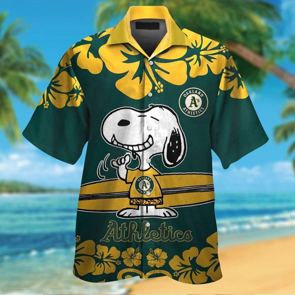 You’re viewing Oakland Athletics Snoopy Short Sleeve Button Up Tropical Hawaiian Shirt.