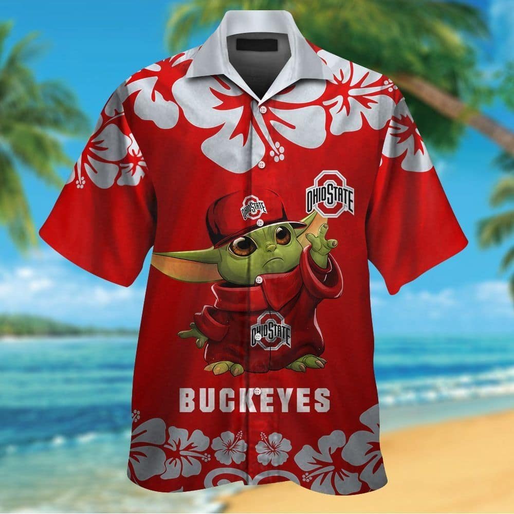 You’re viewing Ohio State Buckeyes Baby Yoda Short Sleeve Button Up Tropical Hawaiian Shirt.