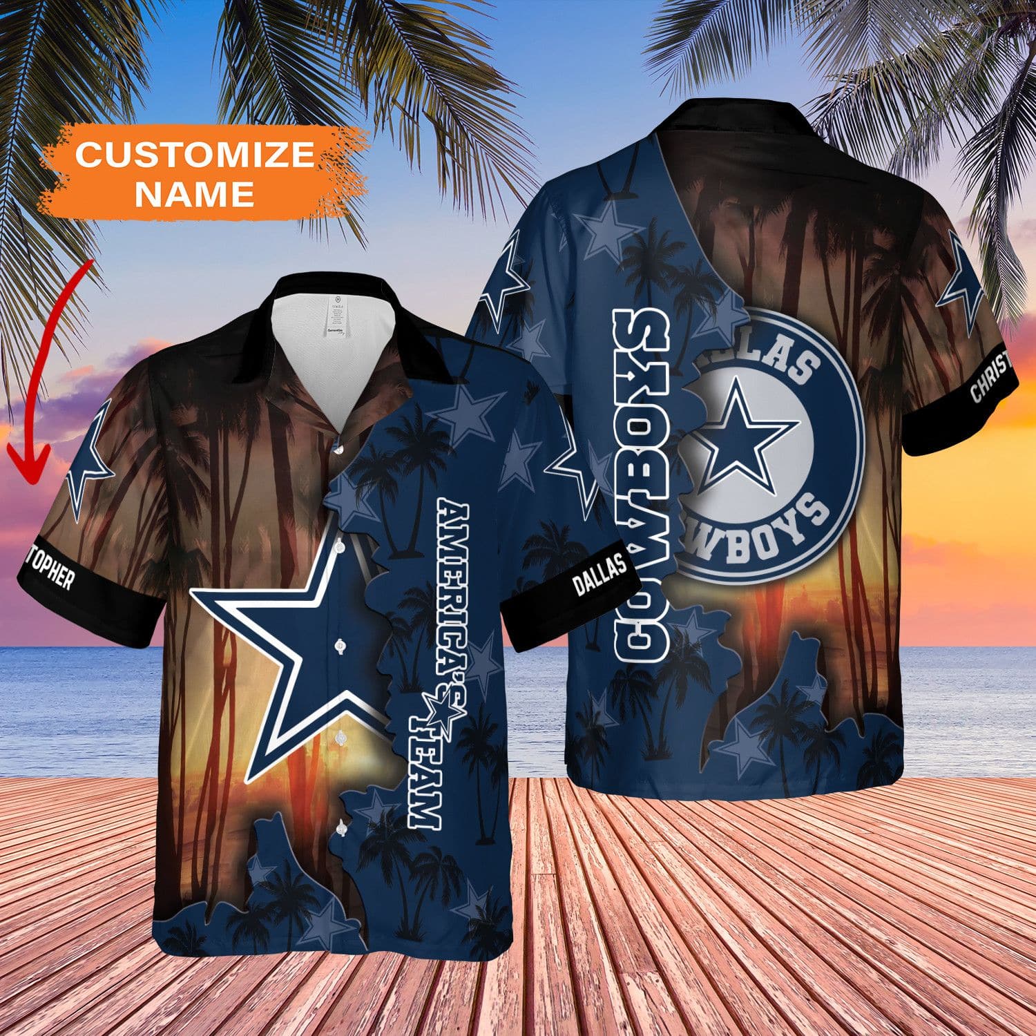 You’re viewing Personalized Sunset And Dallas Cowboys Logo Hawaiian Shirt Custom Name.