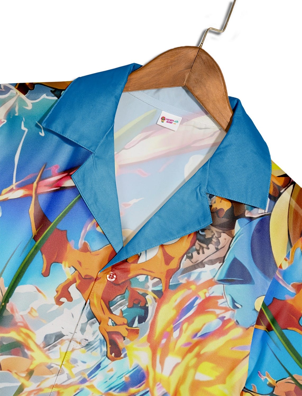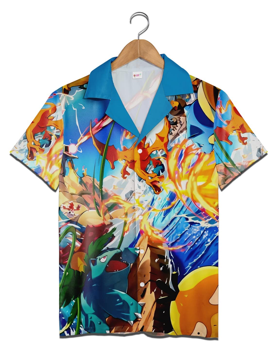 Pokemon Fire Type Hawaiian Shirt Flaming Element Graphic Beach Shirt Casual Wear
