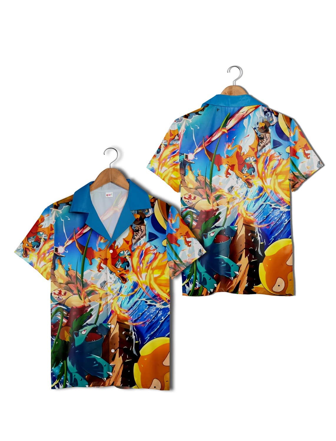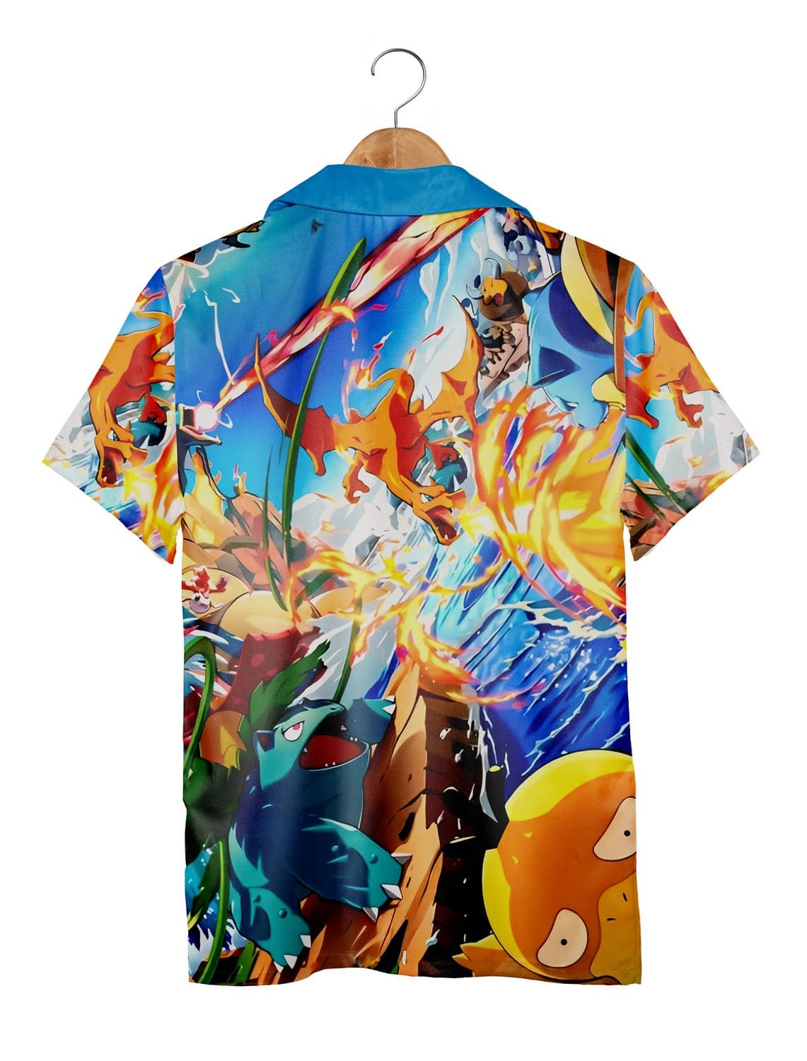 Pokemon Attack Hawaiian Shirt Bold Action Scene Tropical Shirt Summer Outfit