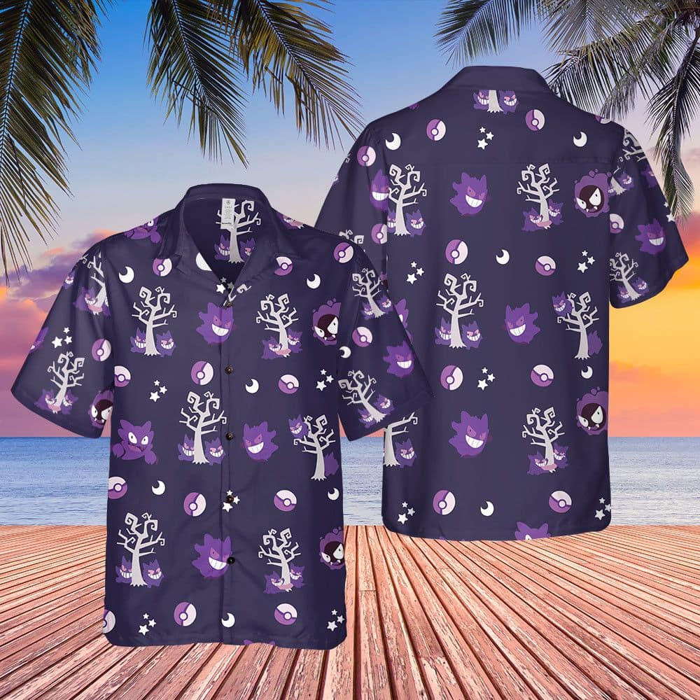 Pokemon Trendy Hawaiian Shirt Gengar Evolution Purple Hawaii Shirt Pokemon KLA Shirt