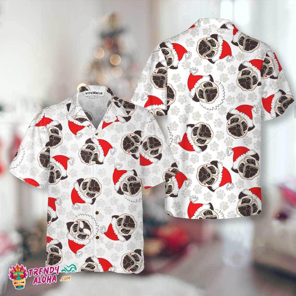 You’re viewing Pug Dog In Santa Hat Hawaiian Shirt, Funny Dog Christmas Shirt, Christmas Gift For Pug Lovers.