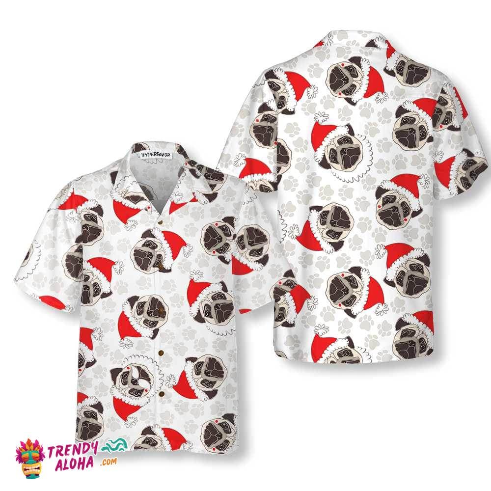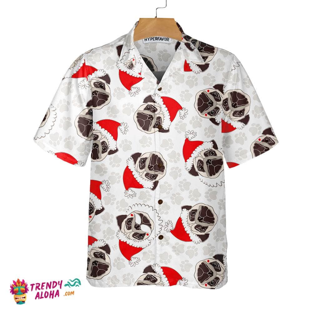 Pug Dog In Santa Hat Hawaiian Shirt, Funny Dog Christmas Shirt, Christmas Gift For Pug Lovers