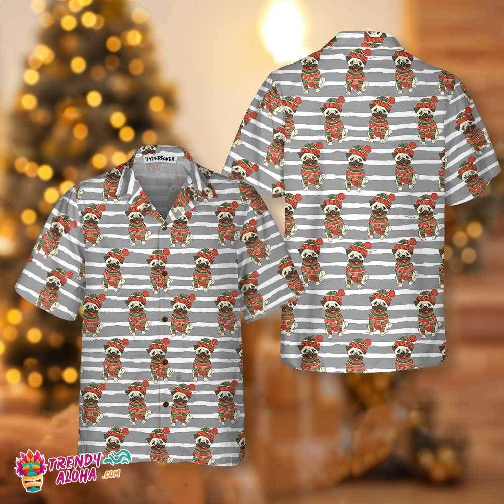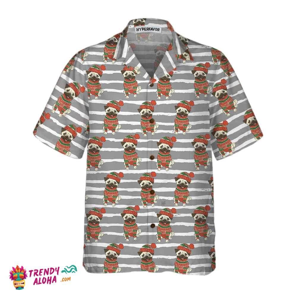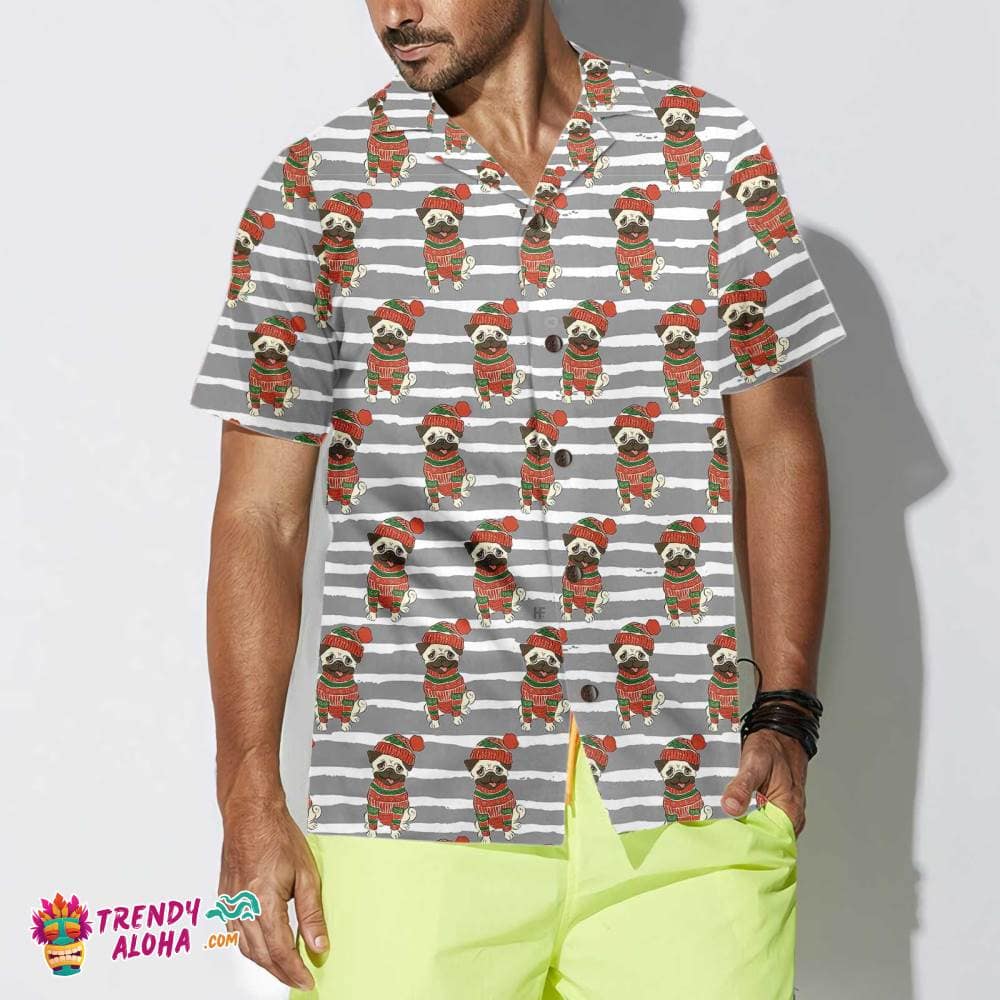Pug In Sweater And Winter Hat Hawaiian Shirt, Funny Pug Christmas Shirt