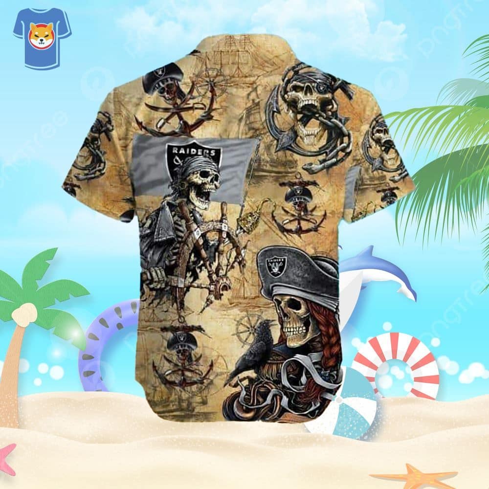You’re viewing Raiders Pirates Skull Inspired Hawaiian Shirt Print.