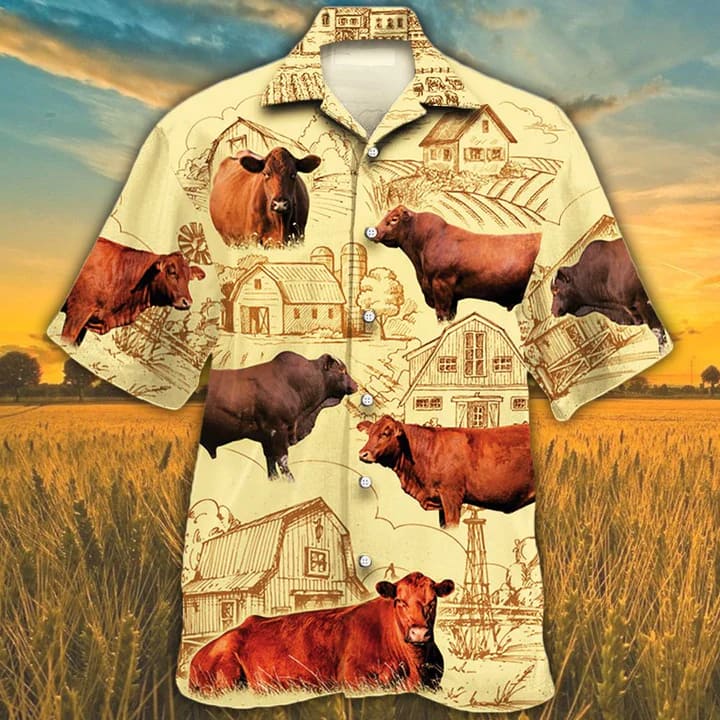 You’re viewing Red Angus Cattle 2 Lovers Farm Trendy Hawaiian Shirt, Farm Cow Short Sleeve Hawaiian KLA Shirt For Men, Women.