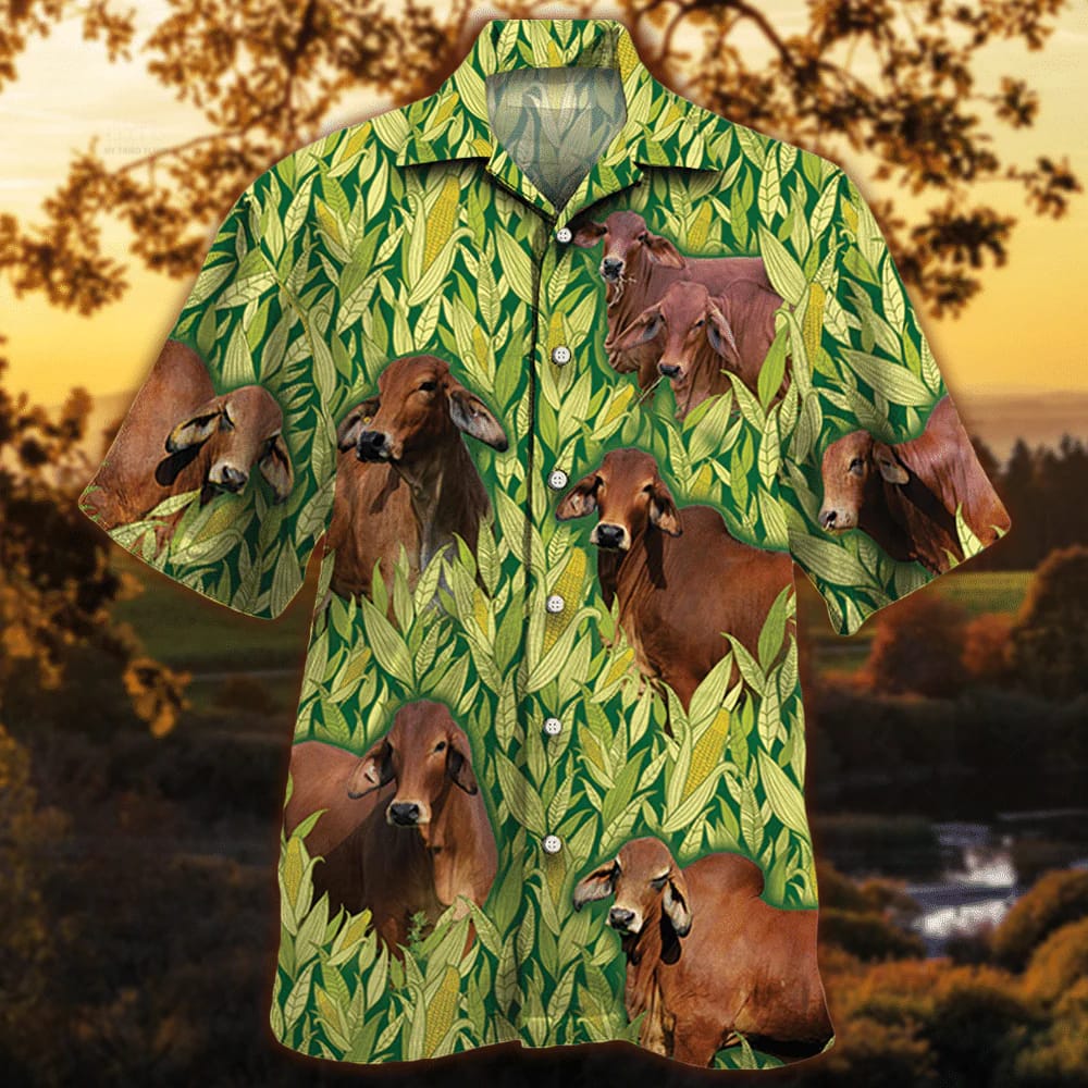 You’re viewing Red Brahman Cattle Lovers Corn Pattern Trendy Hawaiian Shirt, Cow Trendy Hawaiian Shirt For Summer Gifts.