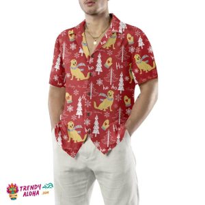 Red Christmas Golden Retriever Hawaiian Shirt, Golden Retriever Christmas Hawaiian Shirt, Best Christmas Gift For Golden Retriever Lover