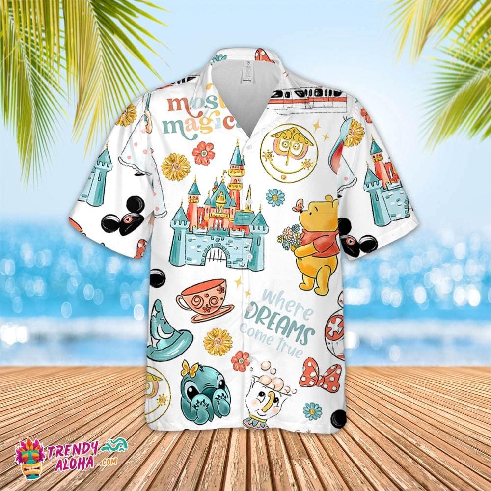 Retro Disney Spring Castle Boo Peep Stitch Pooh Floral Star Wars Minnie Ears Hawaiian Shirt, Short Sleeve Hawaiian KLA Shirt