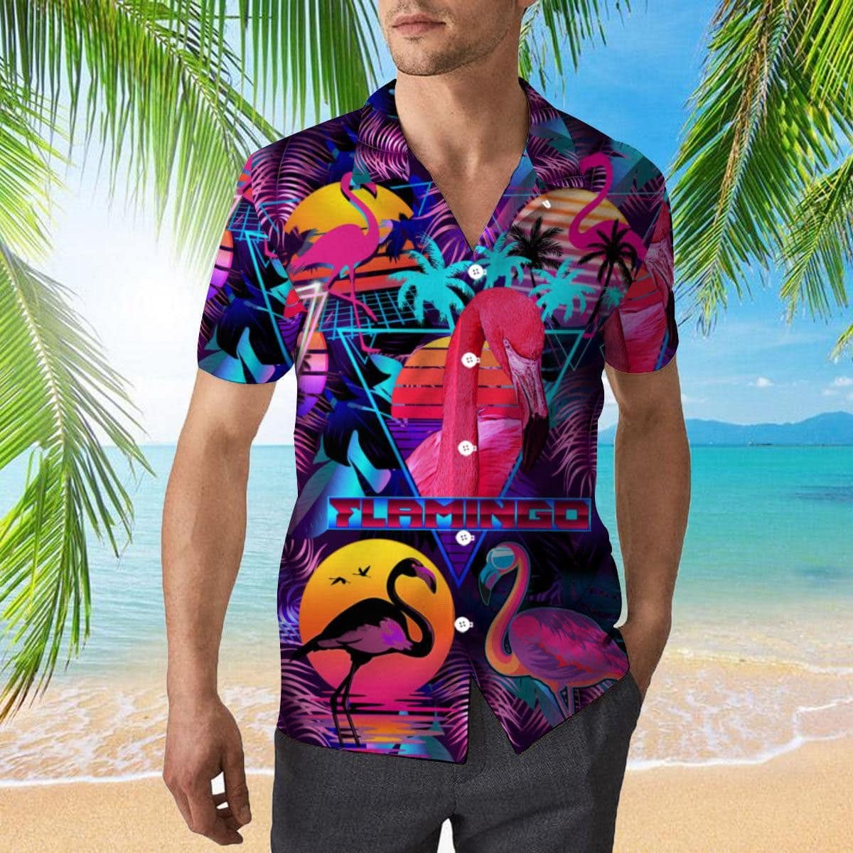 Be the first to review “Retro Neon Tropical Flamingo Trendy Hawaiian Shirt” Cancel reply