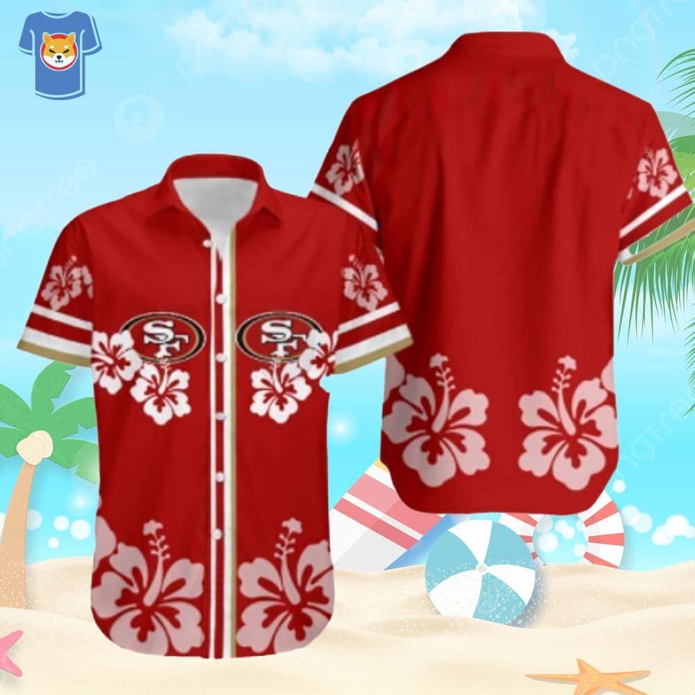 You’re viewing San Francisco 49Ers Hawaiian Shirt Hibiscus Flower Red KLA.