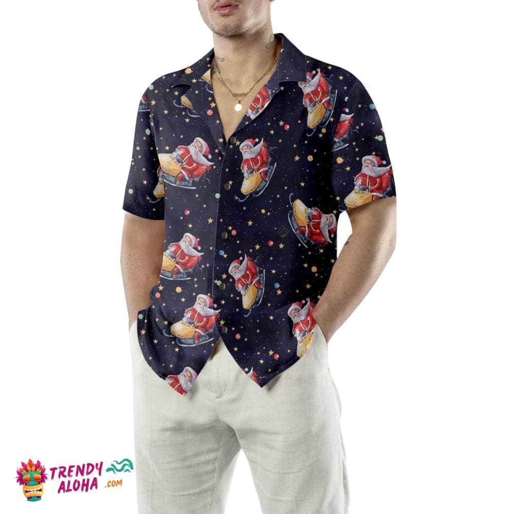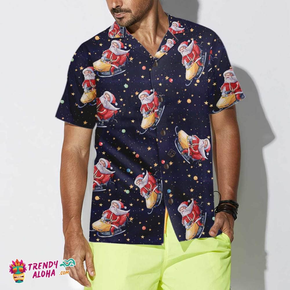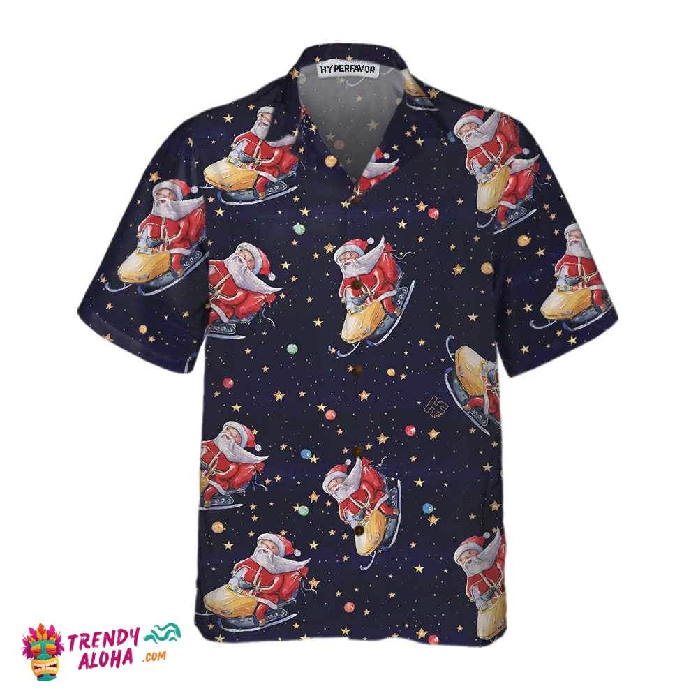 You’re viewing Santa Claus Riding Snowmobile Christmas Hawaiian Shirt, Funny Santa Hawaiian Shirt For Men.