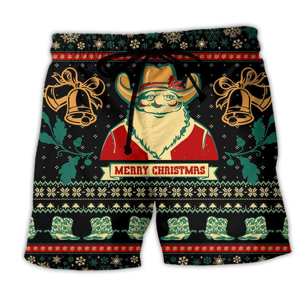 Santa Cowboy Christmas Old Man Merry Christmas Trendy KLA Hawaiian Beach Shorts