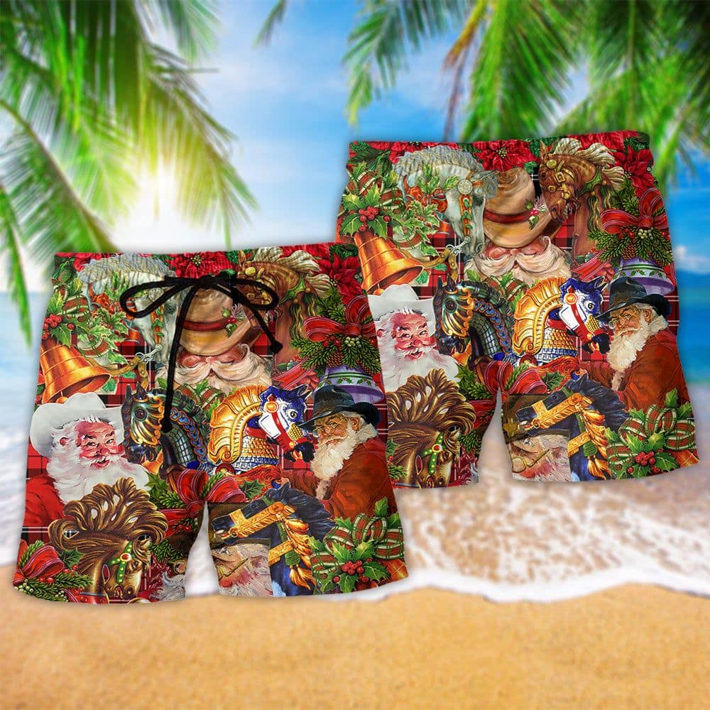 Santa Cowboy Merry Christmas Red Style Trendy KLA Hawaiian Beach Shorts