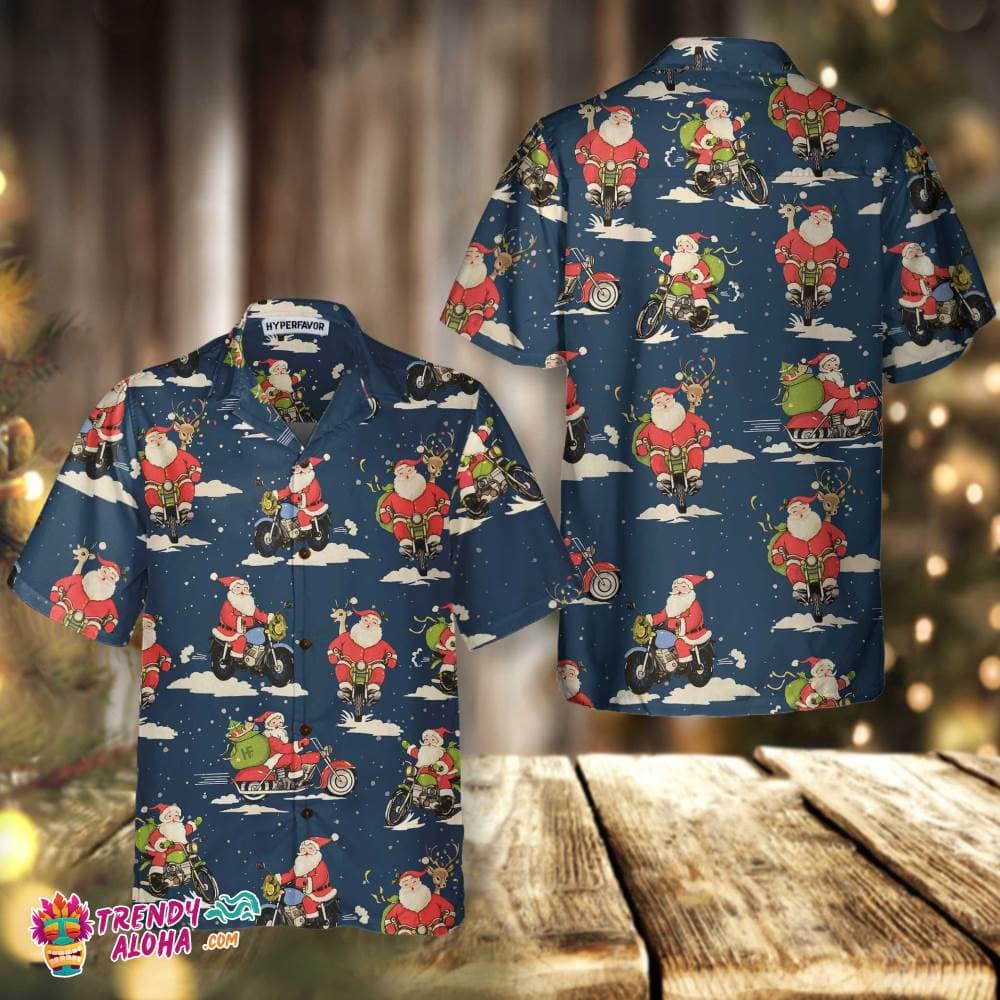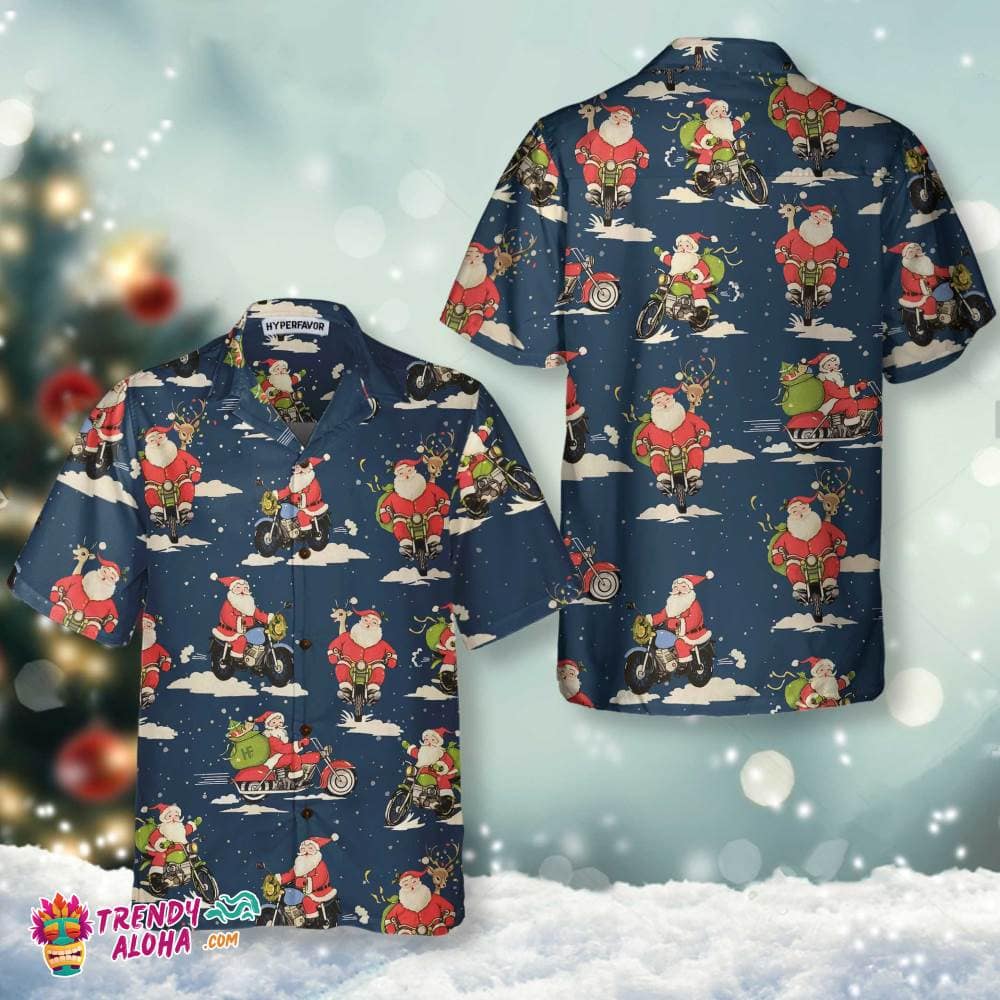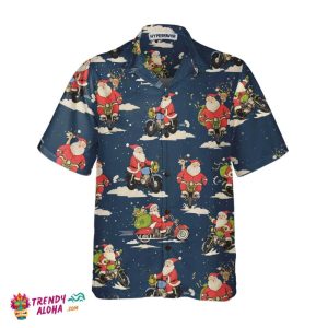 You’re viewing Santa Riding Motorcycle Christmas Hawaiian Shirt For Men, Best Motorcycle Gift For Christmas.
