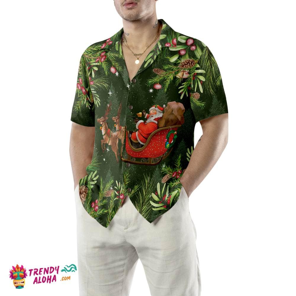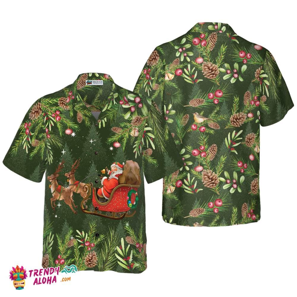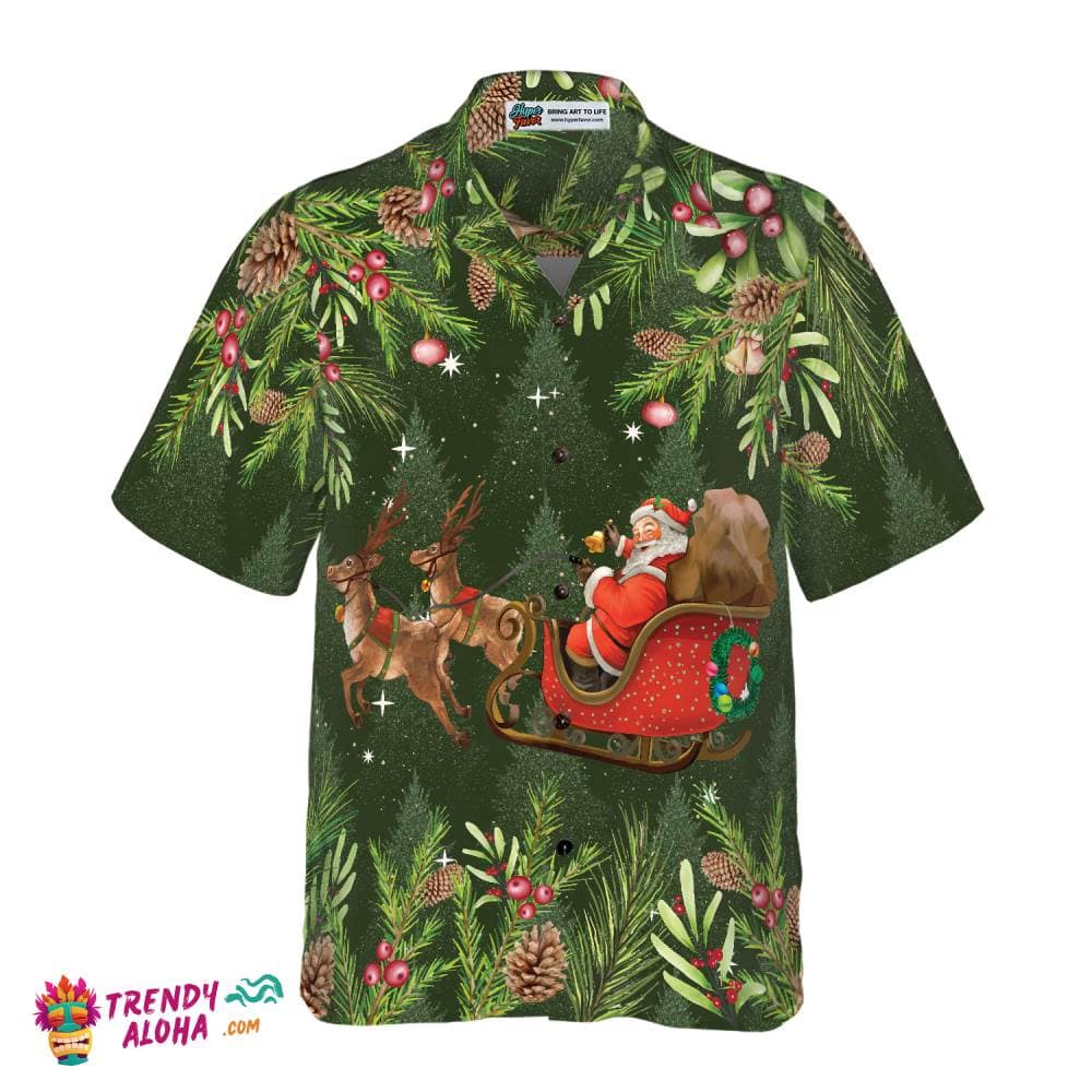 Santa Santa Riding Sleigh 1 Pattern Hawaiian Shirt, Christmas Shirts Short Sleeve Button Down Shirt For Men And Women