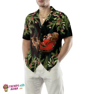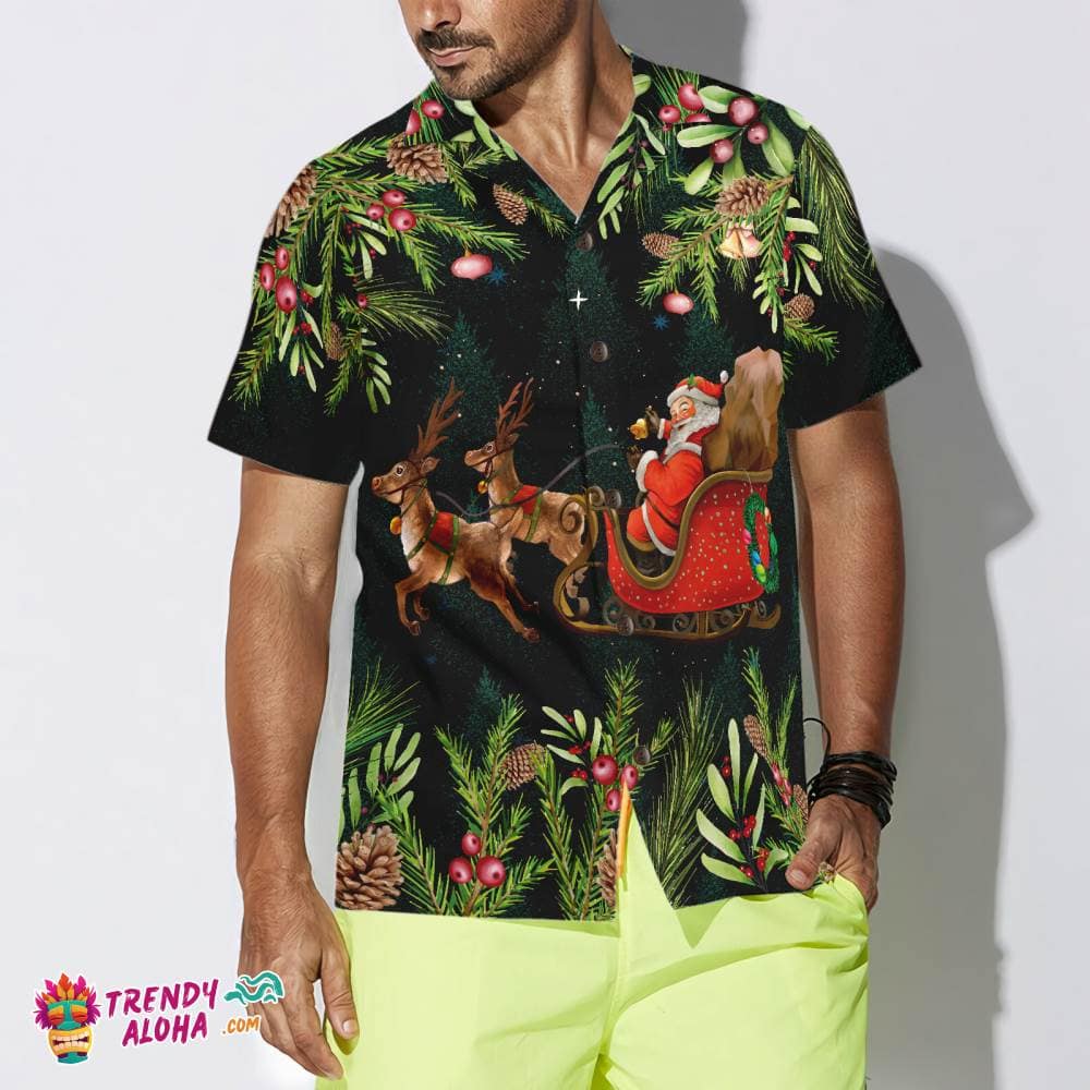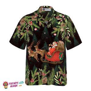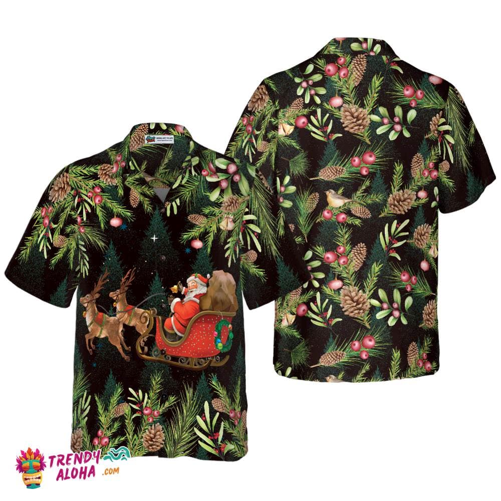 Santa Santa Riding Sleigh 3 Pattern Hawaiian Shirt, Christmas Shirts Short Sleeve Button Down Shirt For Men And Women