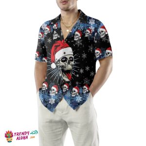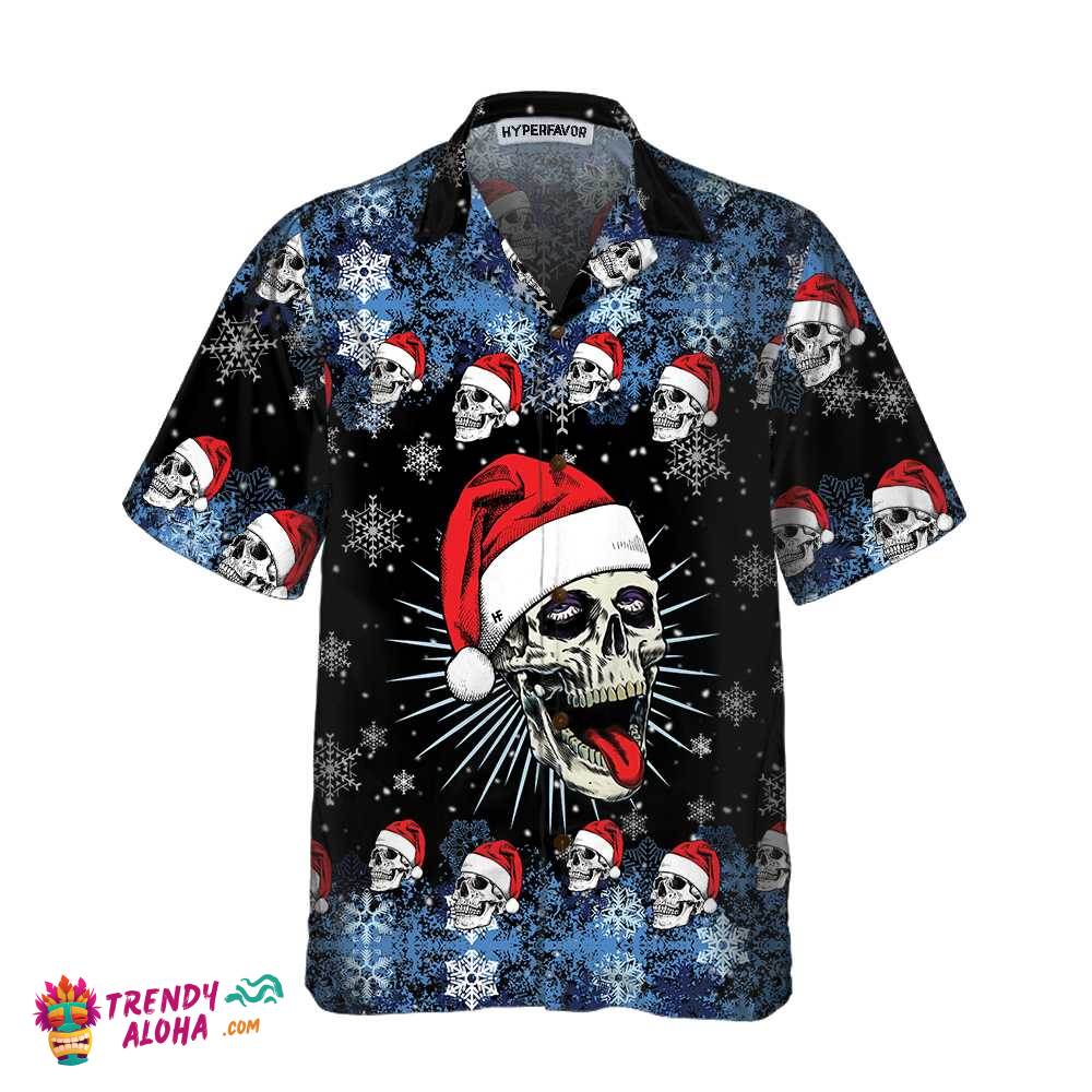 Santa Skull & Snowflake Hawaiian Shirt, Funny Christmas Skull Shirt, Best Christmas Gift Idea