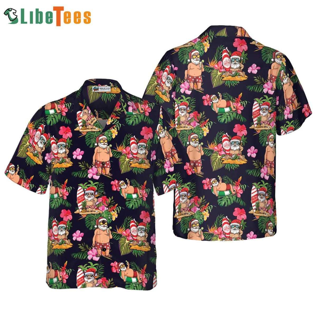 Santa Tropical Flower Christmas, Santa Trendy Hawaiian Shirt Perfect Gifts For Your Loved Ones