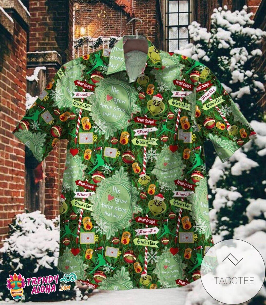 3D Mickey Grinch Face Funny Christmas Gift Merry Xmas Hawaiian Shirt