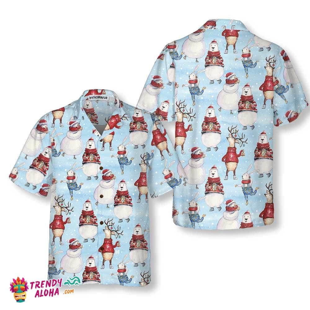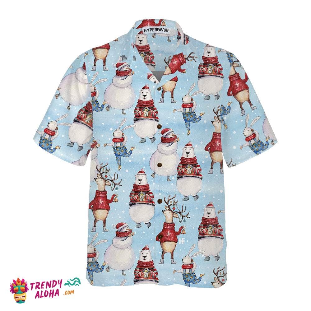 You’re viewing Seamless Christmas Pattern With Bunny And Snowman Christmas Hawaiian Shirt.