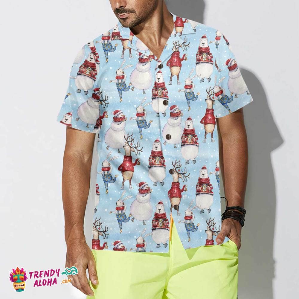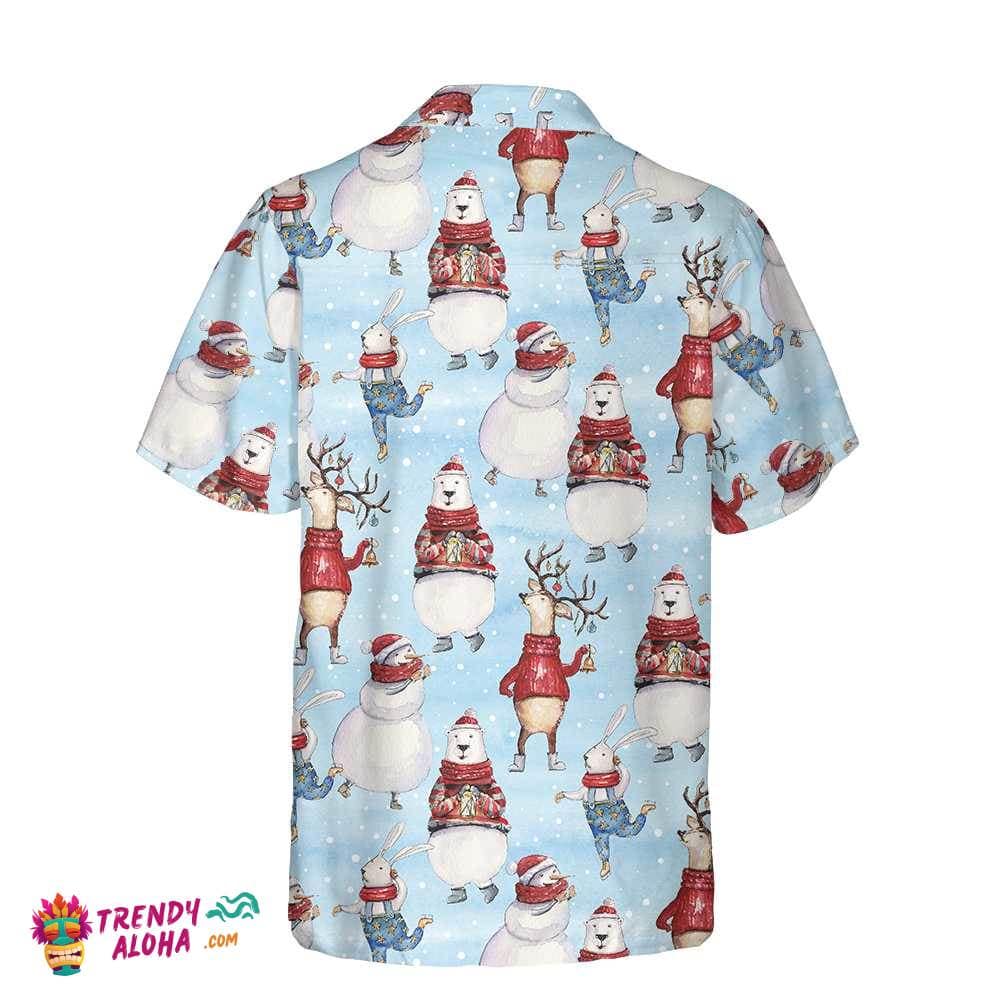 Seamless Christmas Pattern With Bunny And Snowman Christmas Hawaiian Shirt