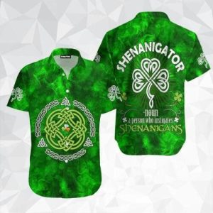 You’re viewing Senanigans Shamrock St Patrick’S Day Trendy Hawaiian Shirt For Men & Women.