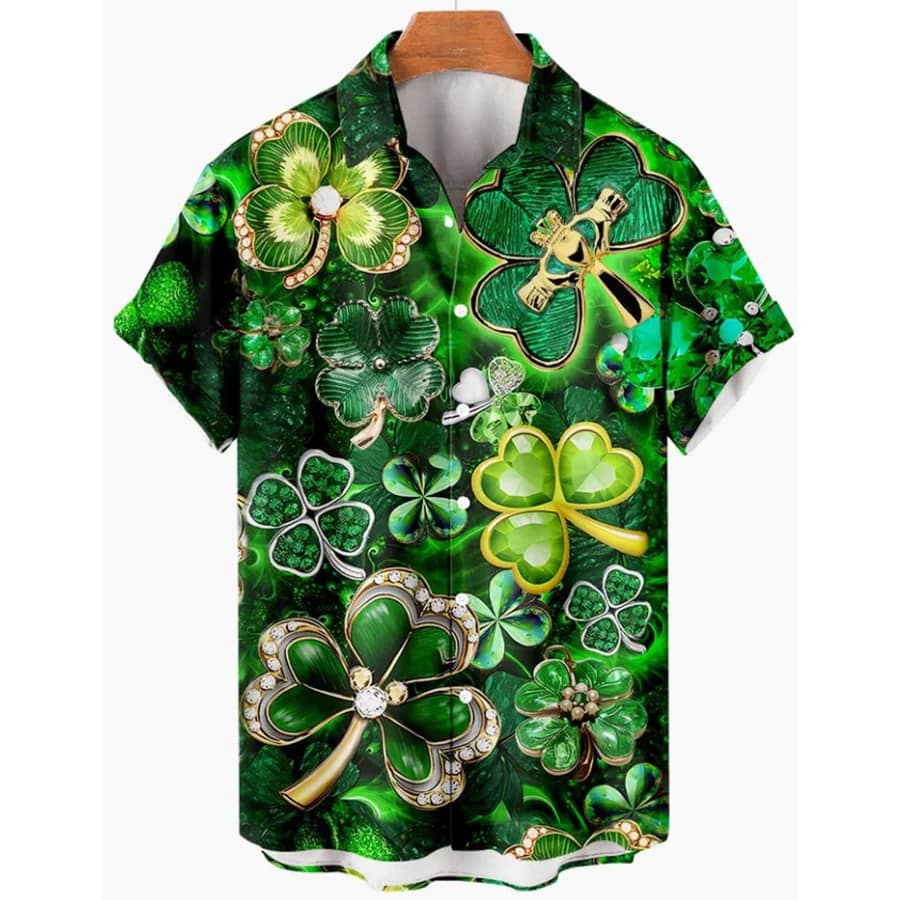 Shamrock St. Patrick’s Day Short Sleeve Trendy Hawaiian Shirt, St. Patrick’s Day Shirt, Shamrock Trendy Hawaiian Shirt