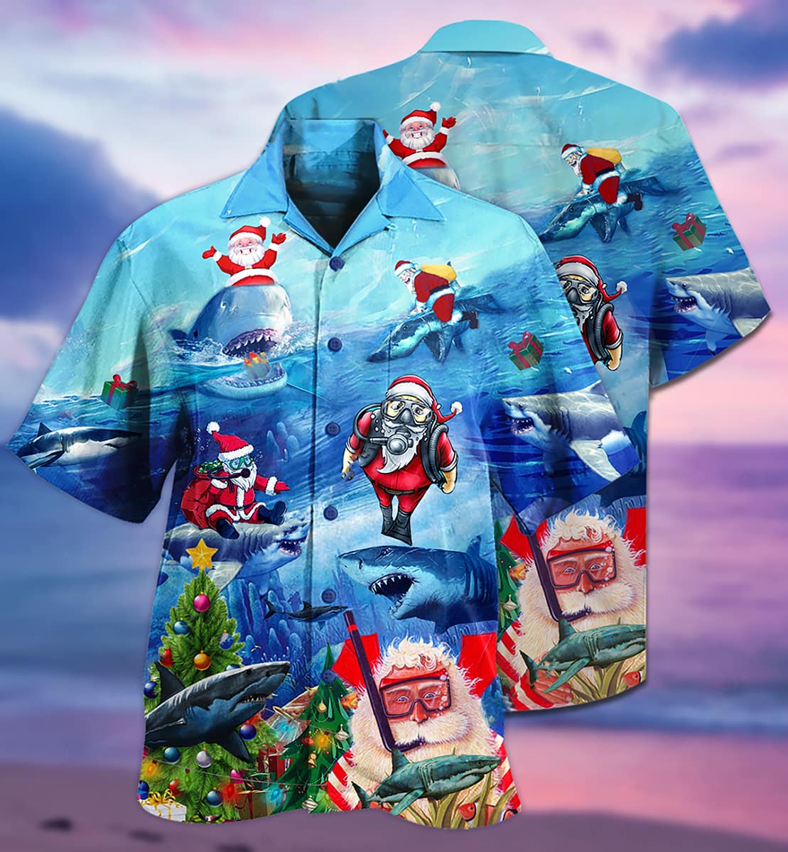 You’re viewing Shark Love Santa Blue Sea Hawaiian Shirt.