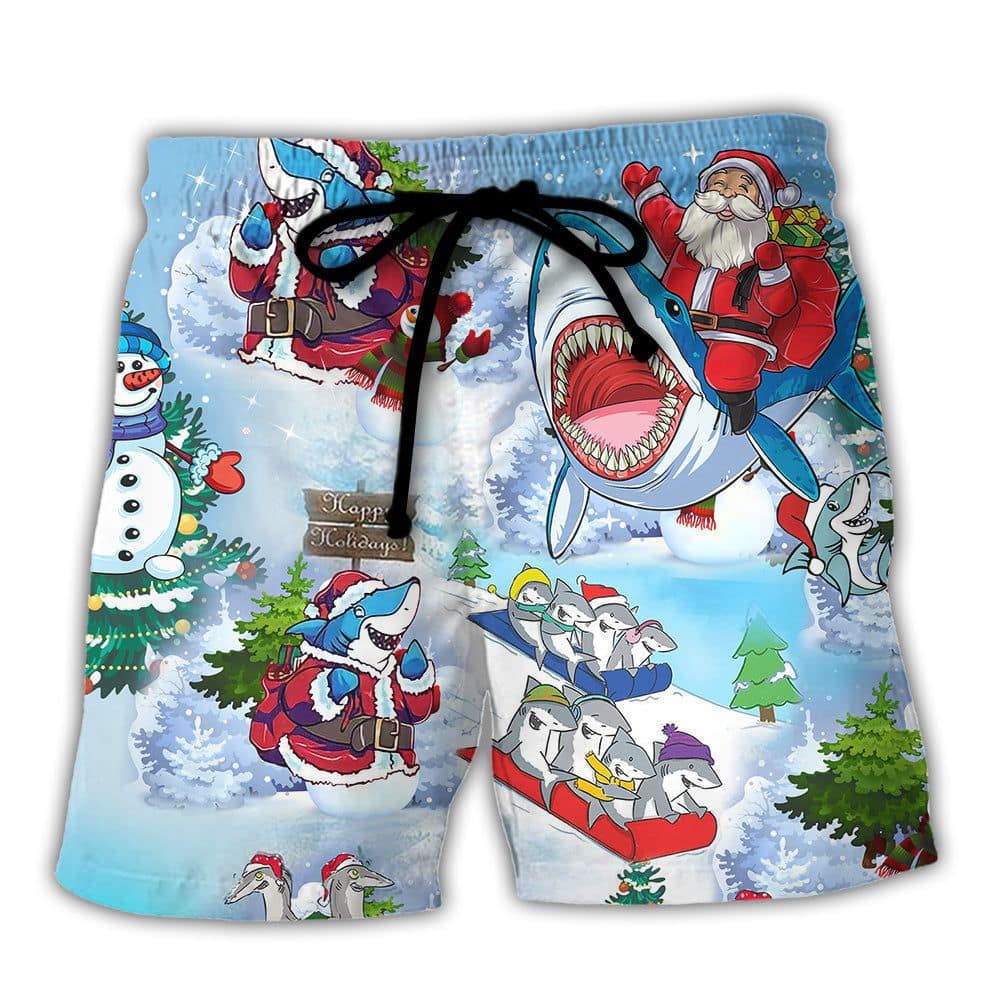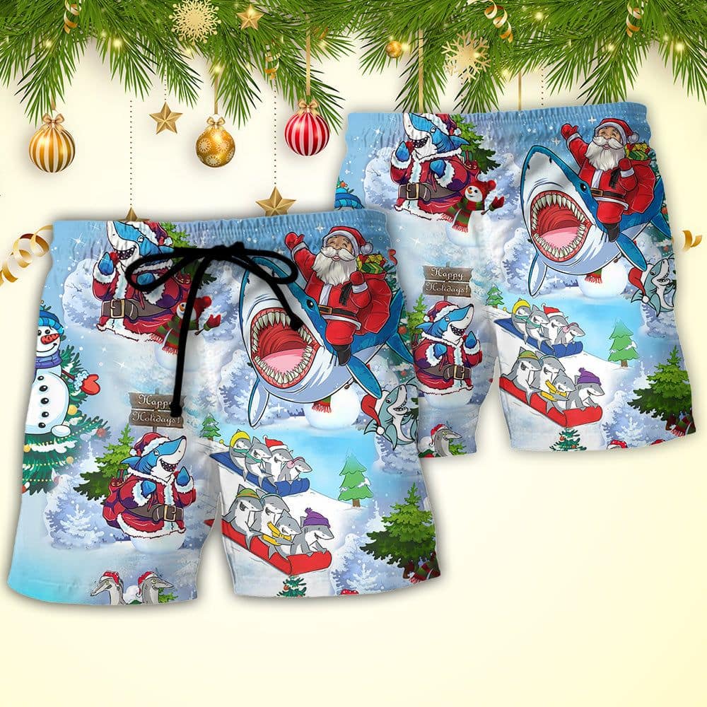 Shark Santa Love Xmas Merry Christmas Trendy KLA Hawaiian Beach Shorts
