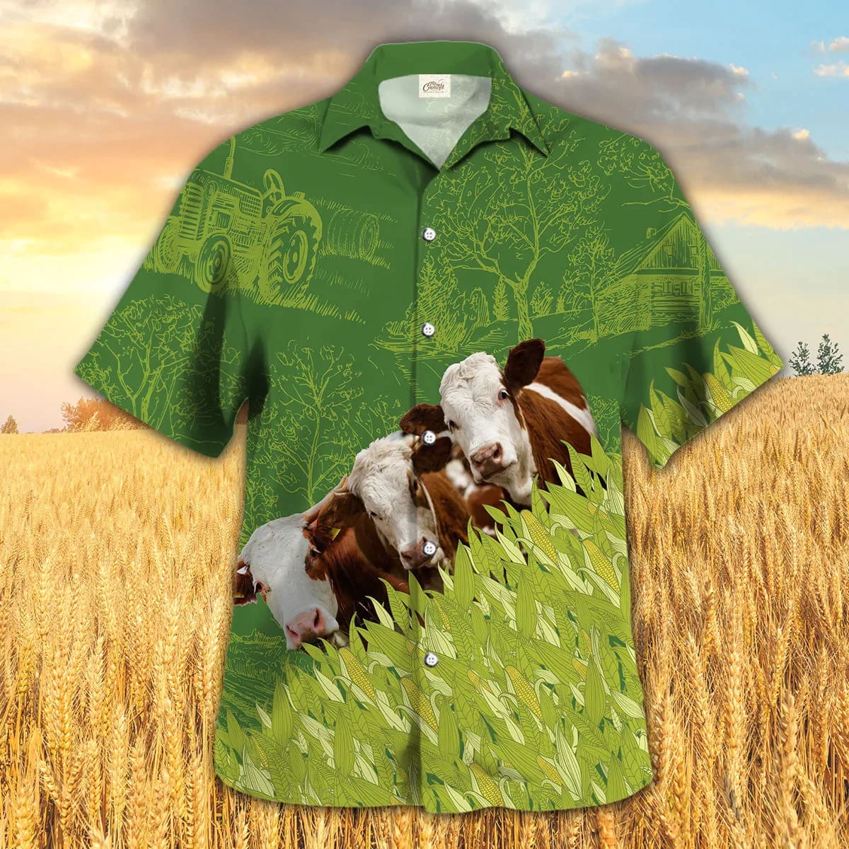 Simmental Farm Corn Pattern Trendy Hawaiian Shirt, Cow Trendy Hawaiian Shirt, Summer Trendy Hawaiian Shirt For Men And Women