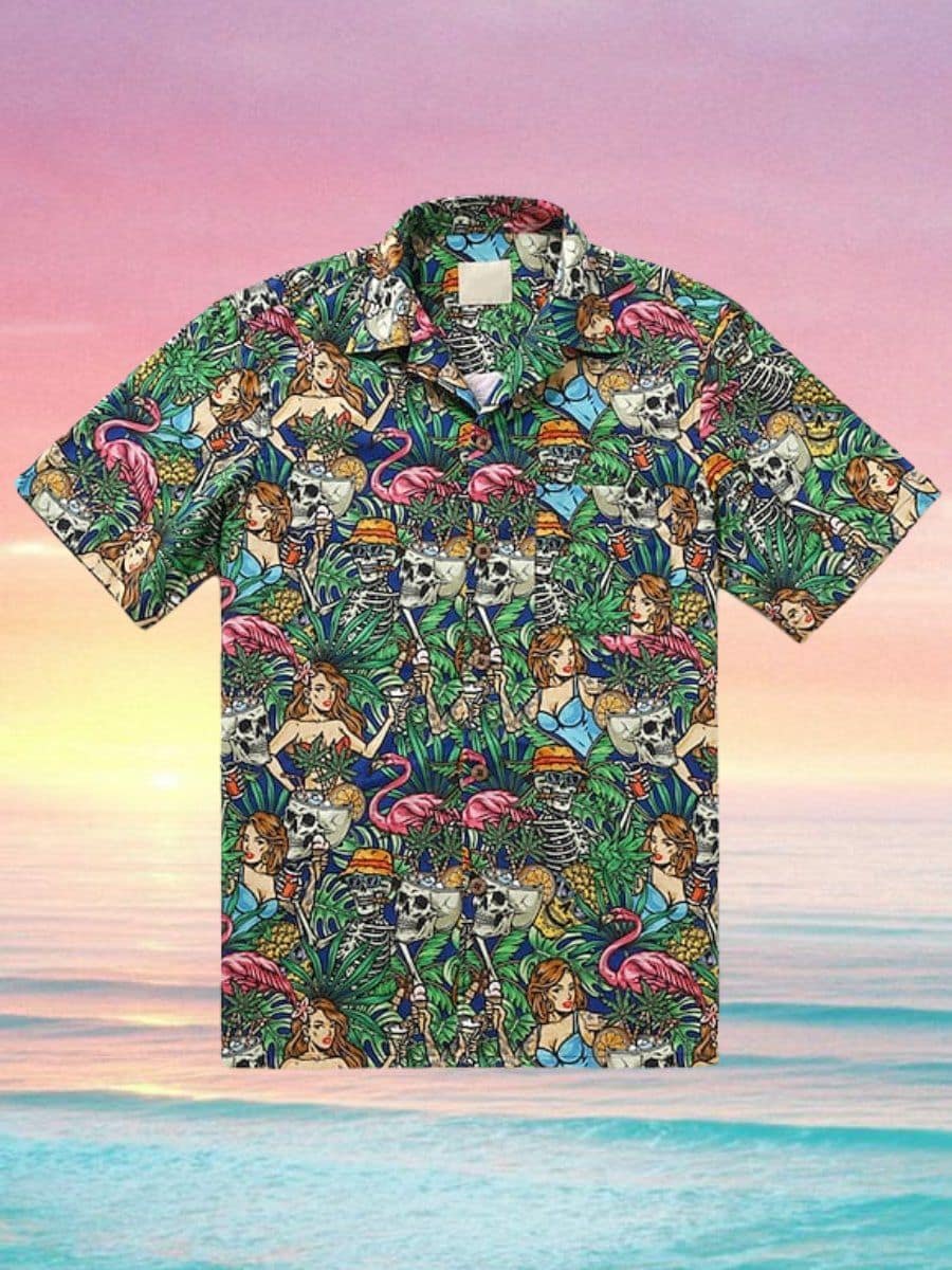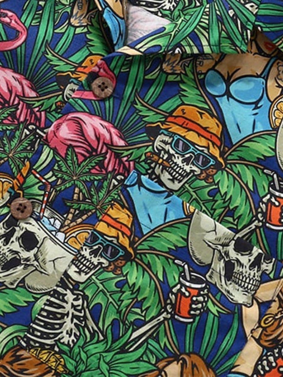 Be the first to review “Skeleton Flamingo Print Pocket Short Sleeve Hawaiian Shirt” Cancel reply