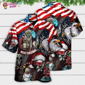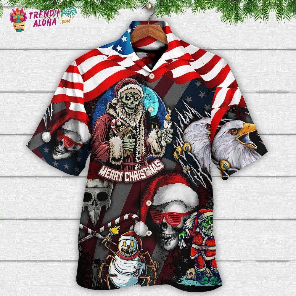 Skull Christmas Us Flag Skeleton And Eagle Xmas Vibe Hawaiian Shirt – Trendy KLA