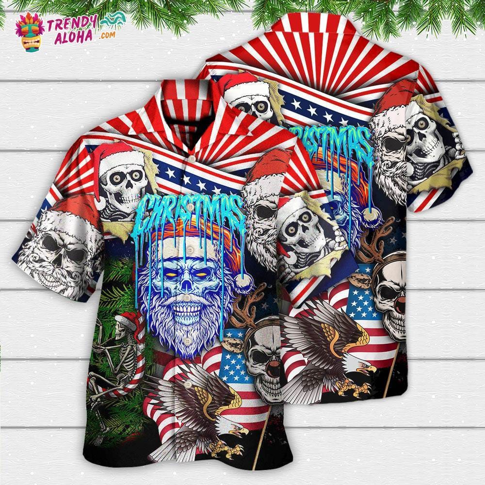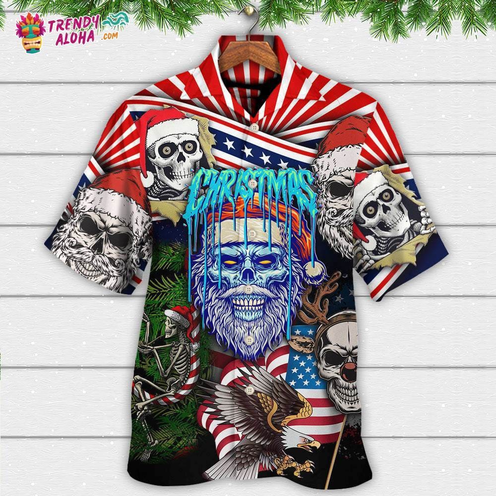 Skull Christmas Us Flag Skeleton Horror Merry Christmas Hawaiian Shirt – Trendy KLA