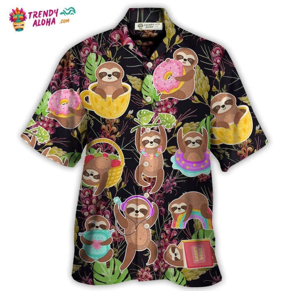 Sloth Cute Funny Tropical Vibe Art Hawaiian Shirt – Trendy KLA
