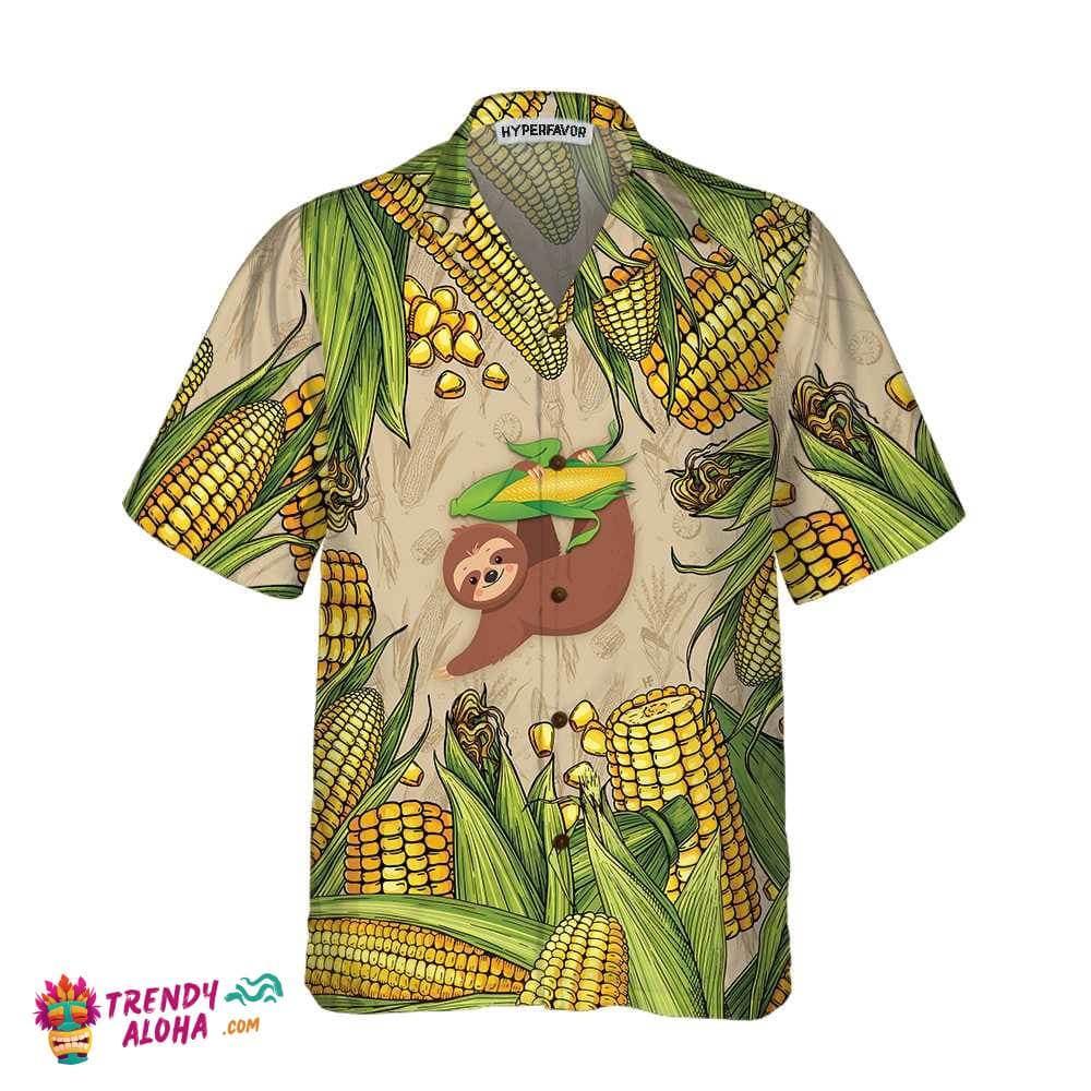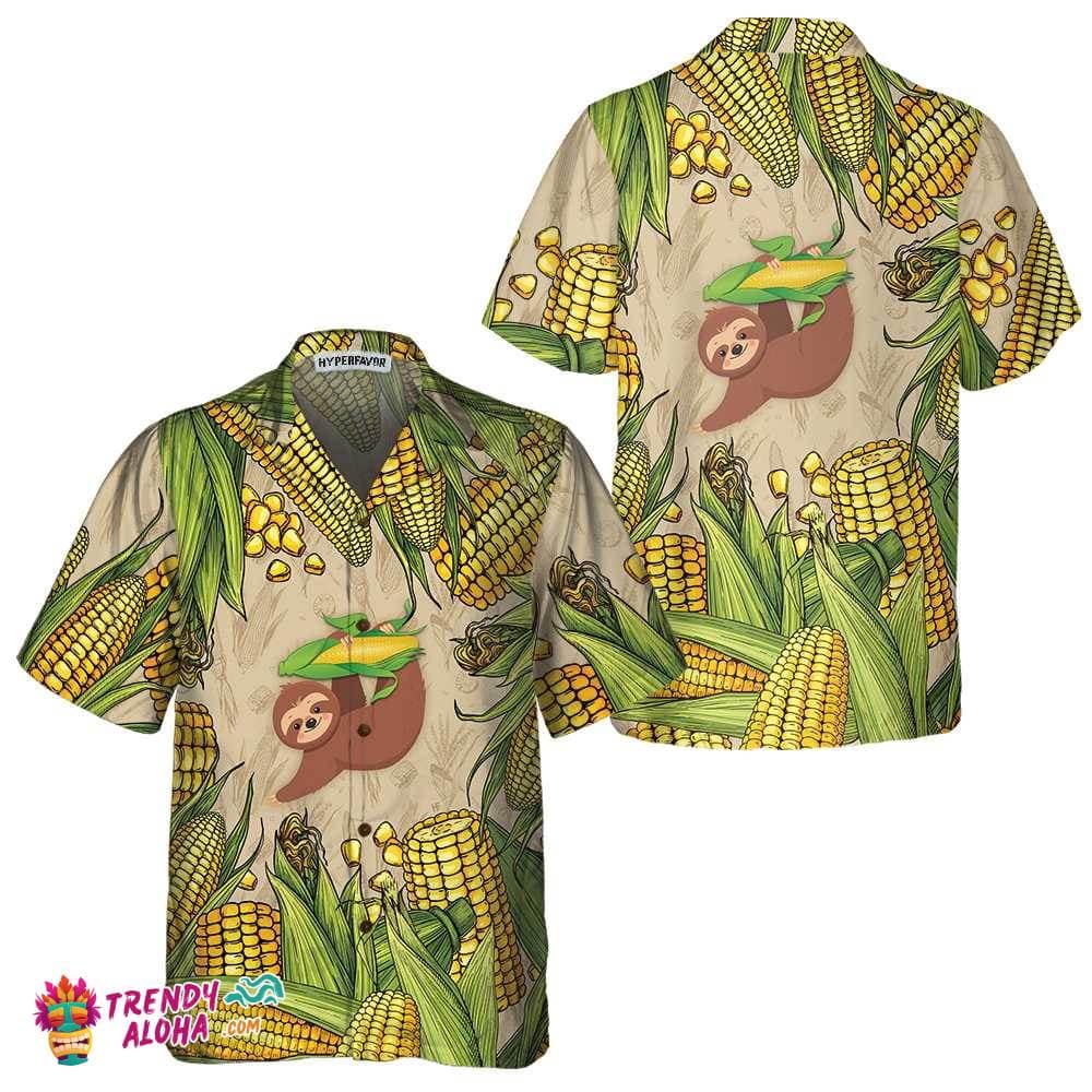 Slothcorn Hawaiian Shirt, Funny Sloth And Corn Shirt For Men, Unique Corn Cop Shirt