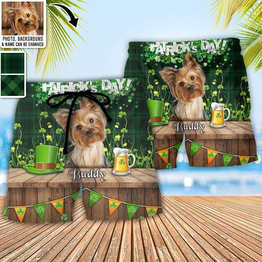 St.Patrick’s Day Happy Gold Shamrock Custom Photo Personalized Trendy KLA Hawaiian Beach Shorts – Personalized Photo Gifts