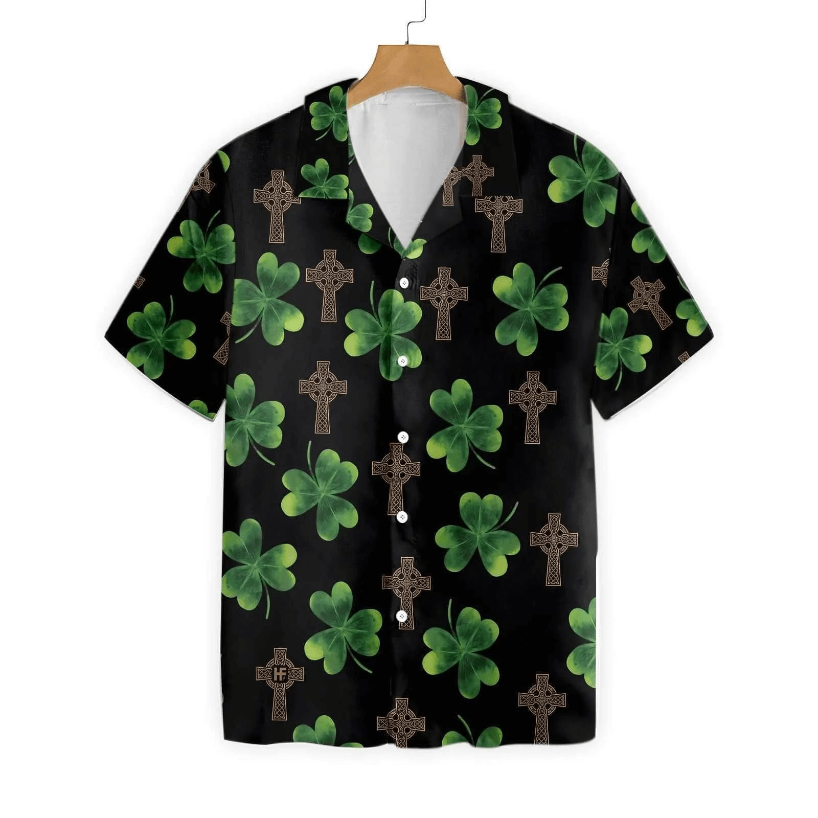 St Patrick’s Day Hawaii Shirt Celtic Cross Clover Black KLA Shirt St Patrick’s Day Trendy Hawaiian Shirt