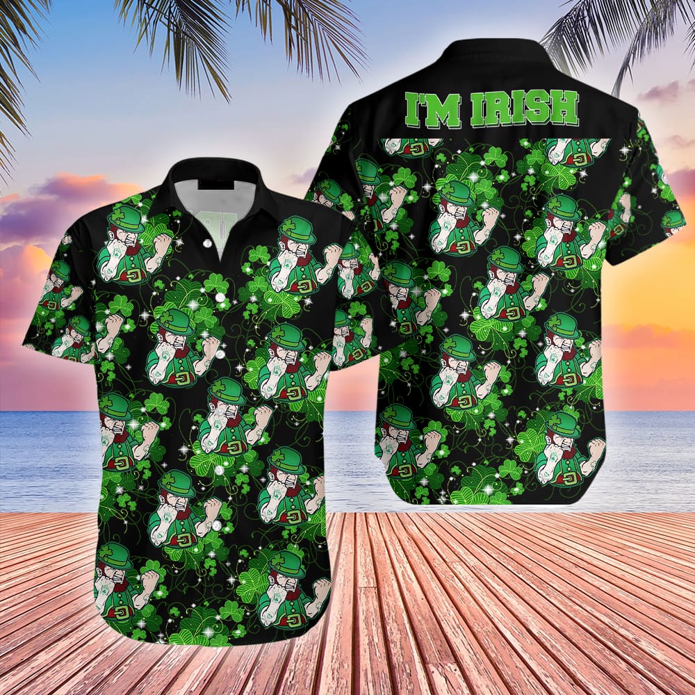 St Patricks Day Hawaii Shirt Im Irish Leprechauns Black KLA Shirt St Patricks Day Hawaiian Shirt