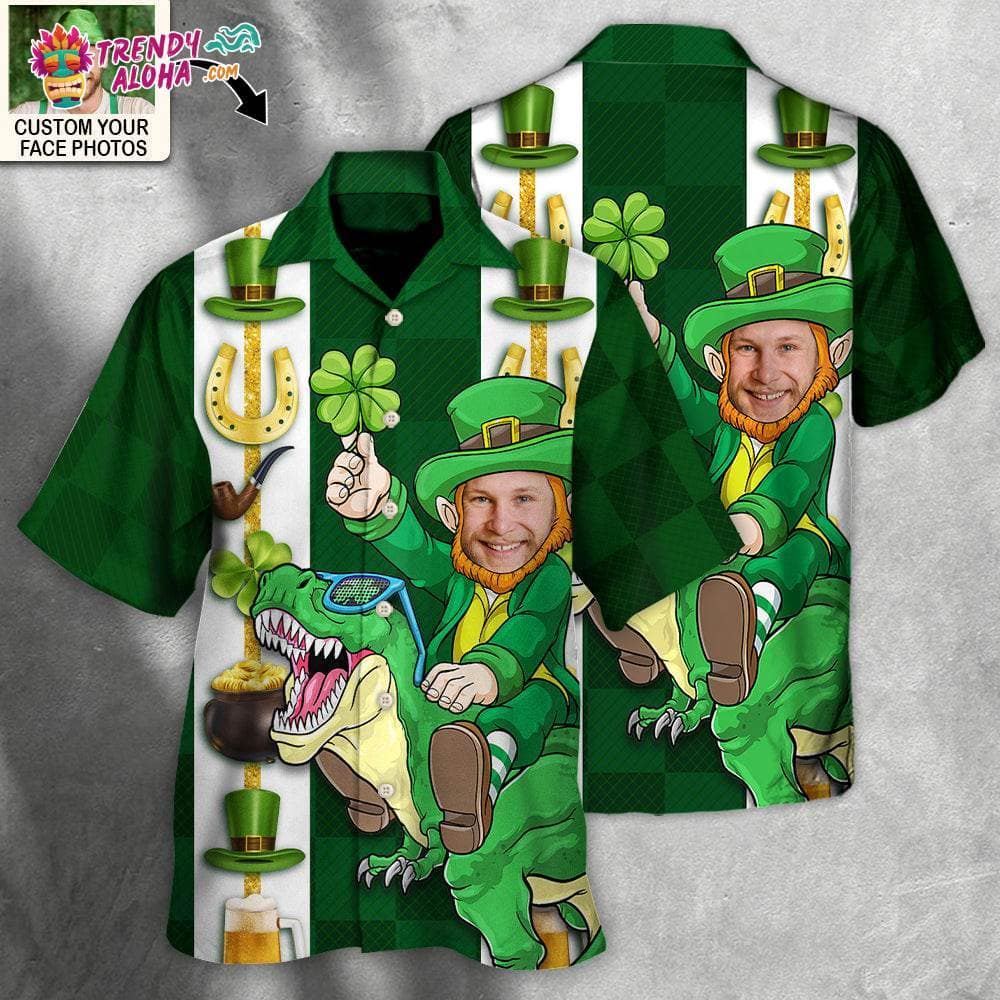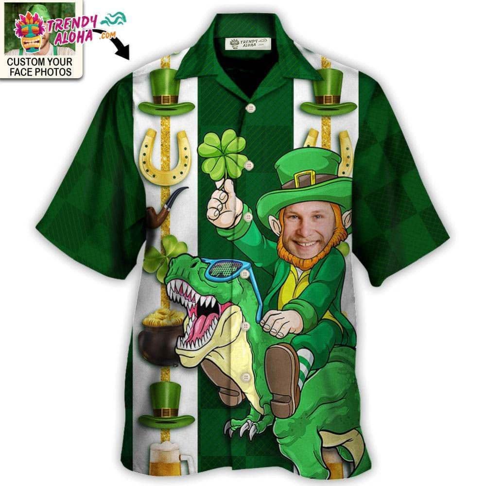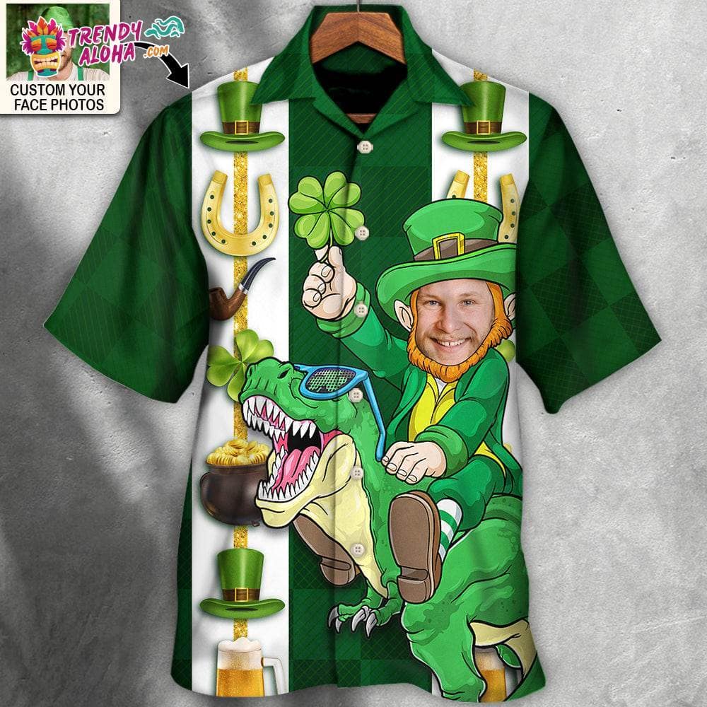 St Patrick’S Day Leprechaun Riding Dinosaur Funny Custom Photo Personalized – Hawaiian Shirt – Personalized Photo Gifts Hawaiian Shirt – Trendy KLA