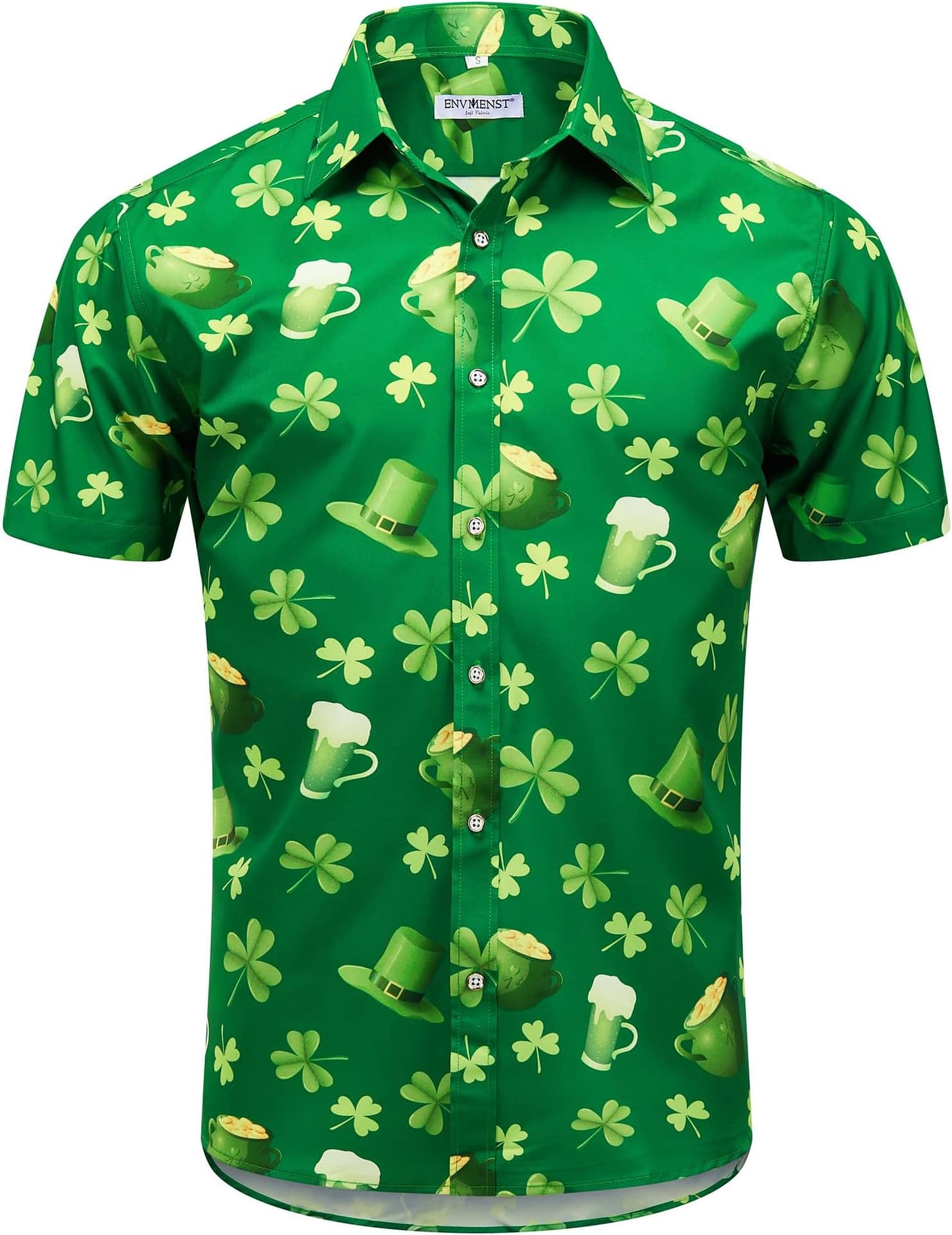 Be the first to review “St Patrick’s Day Mens Hawaiian Shirt Irish Clover Print For Holiday Party Green Outfit Shirt” Cancel reply