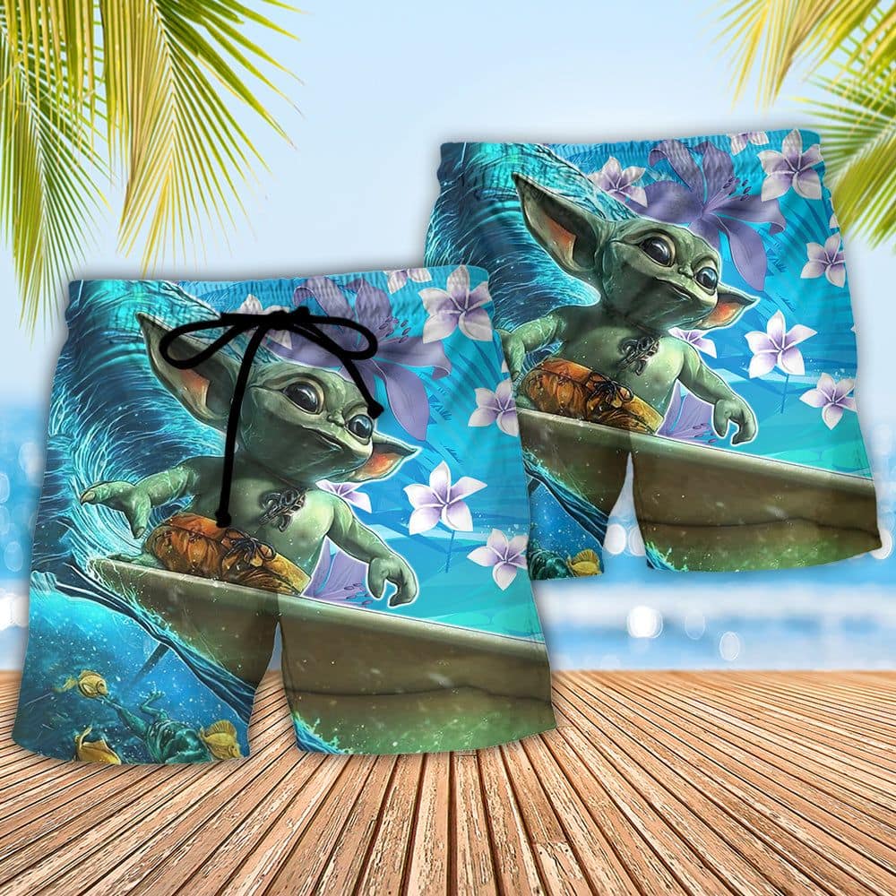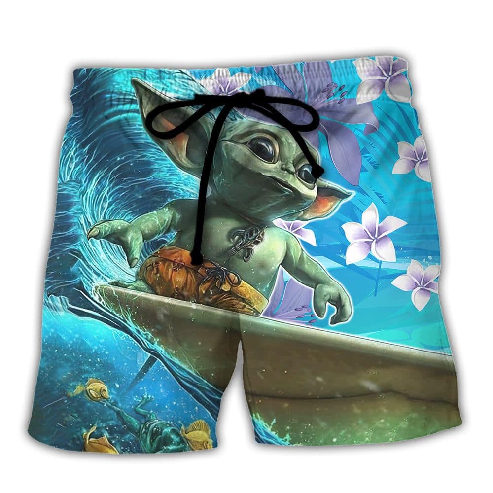 You’re viewing Starwars Baby Yoda Surfing Trendy KLA Hawaiian Beach Shorts.